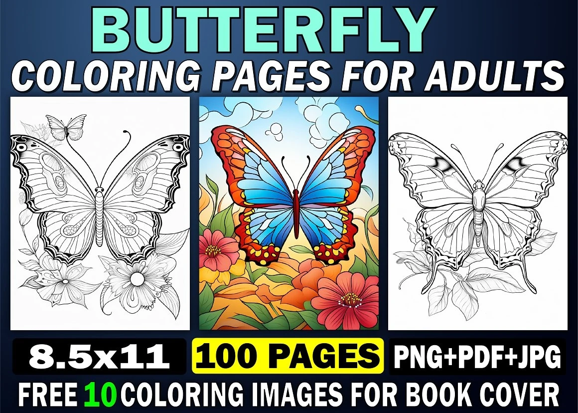 Butterfly Coloring Pages for Adults 2 : Word Searches, Color- By-Numbers, Puzzles, Count-and-Color,