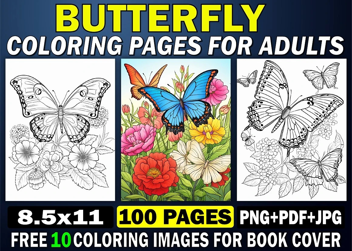 Butterfly Coloring Pages for Adults 3 : Word Searches, Color- By-Numbers, Puzzles, Count-and-Color,