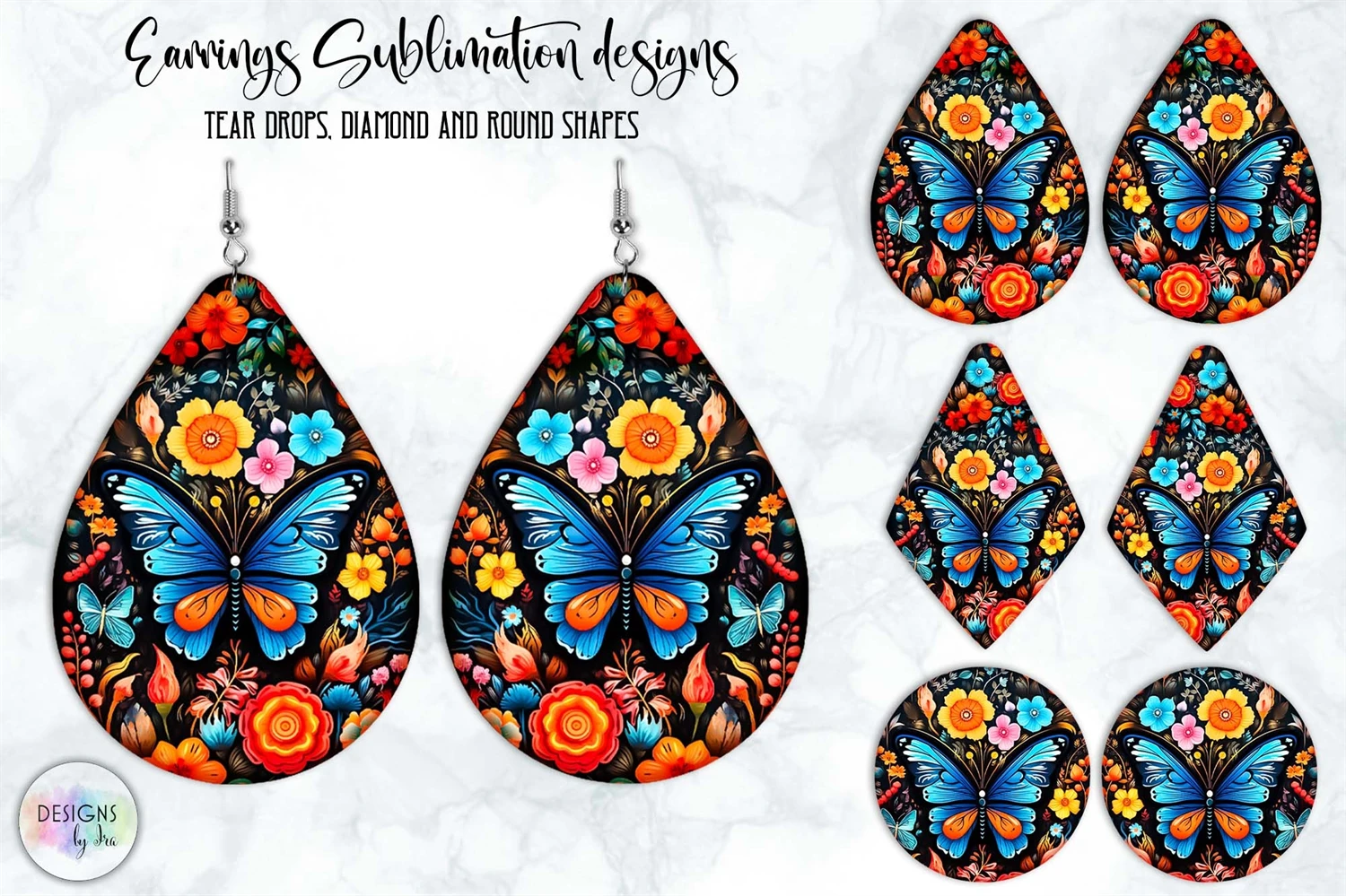 Butterfly Earrings Sublimation Set with 3 shapes in Folk Art