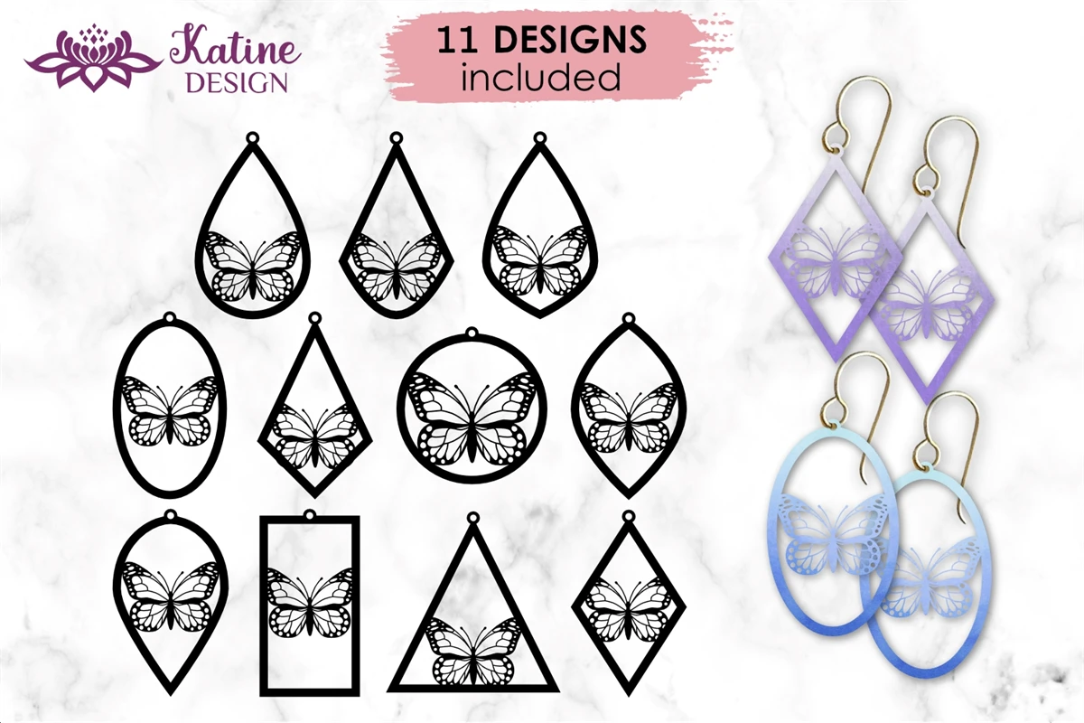 Butterfly Earrings Svg Bundle Geometric Earrings Cricut. Png, pdf, eps, dxf, svg files for cricut