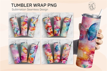 Butterfly Floral Tumbler Wrap, Add Your Own Name, Colorful Flowers, Sublimation Seamless Designs, Tumbler Wrap Bundle, Skinny Tumbler 20oz Seamless Pattern, PNG Digital Download Template