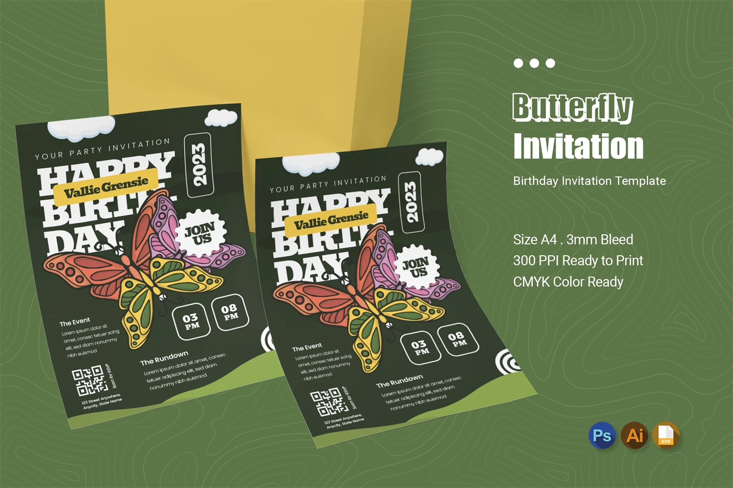Of course you want to invite friends to your birthday party with the best invitations! Impress the invited guests with your style of invitation, by using this invitation card template. You can easily edit & customize each of the designs because every component is well organized and editable.