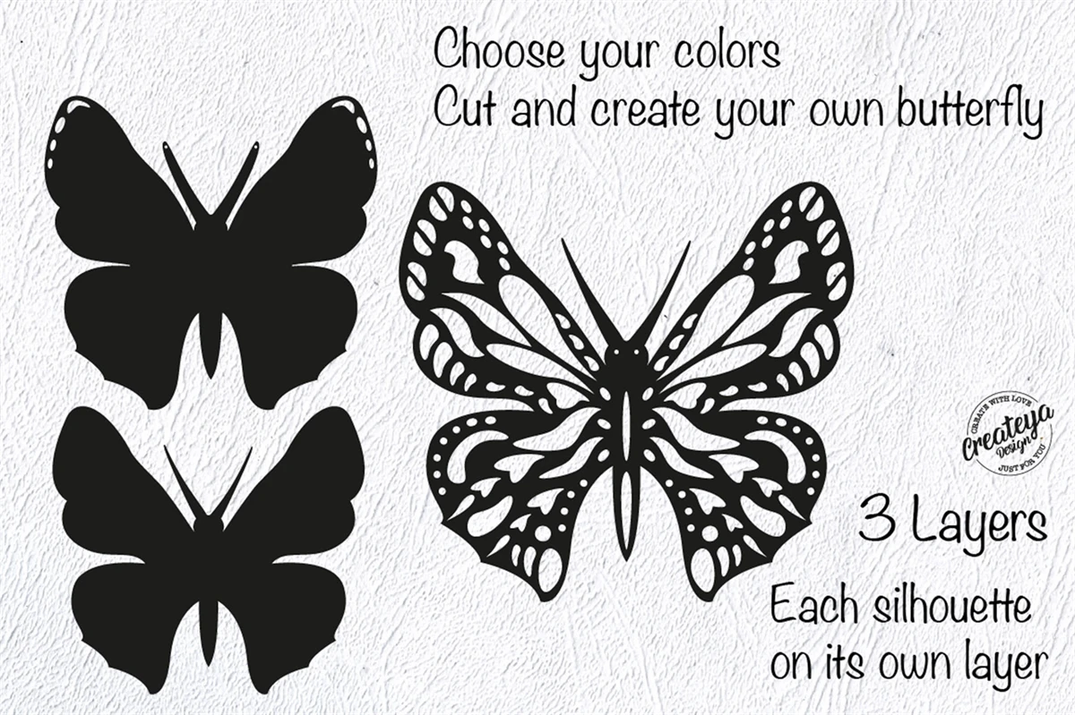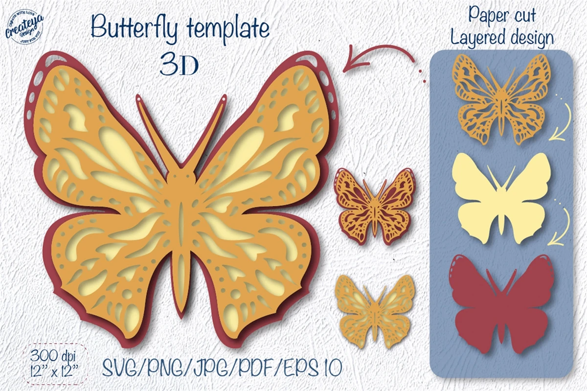 Layered Butterfly SVG perfect for card making with 3d butterfly, digital scrapbooking. You can also make lovely gifts or decorations with papercut butterfly or use butterfly for Tumbler design or for mugs designs, decal, iron or vinyl decals and other craft projects.
