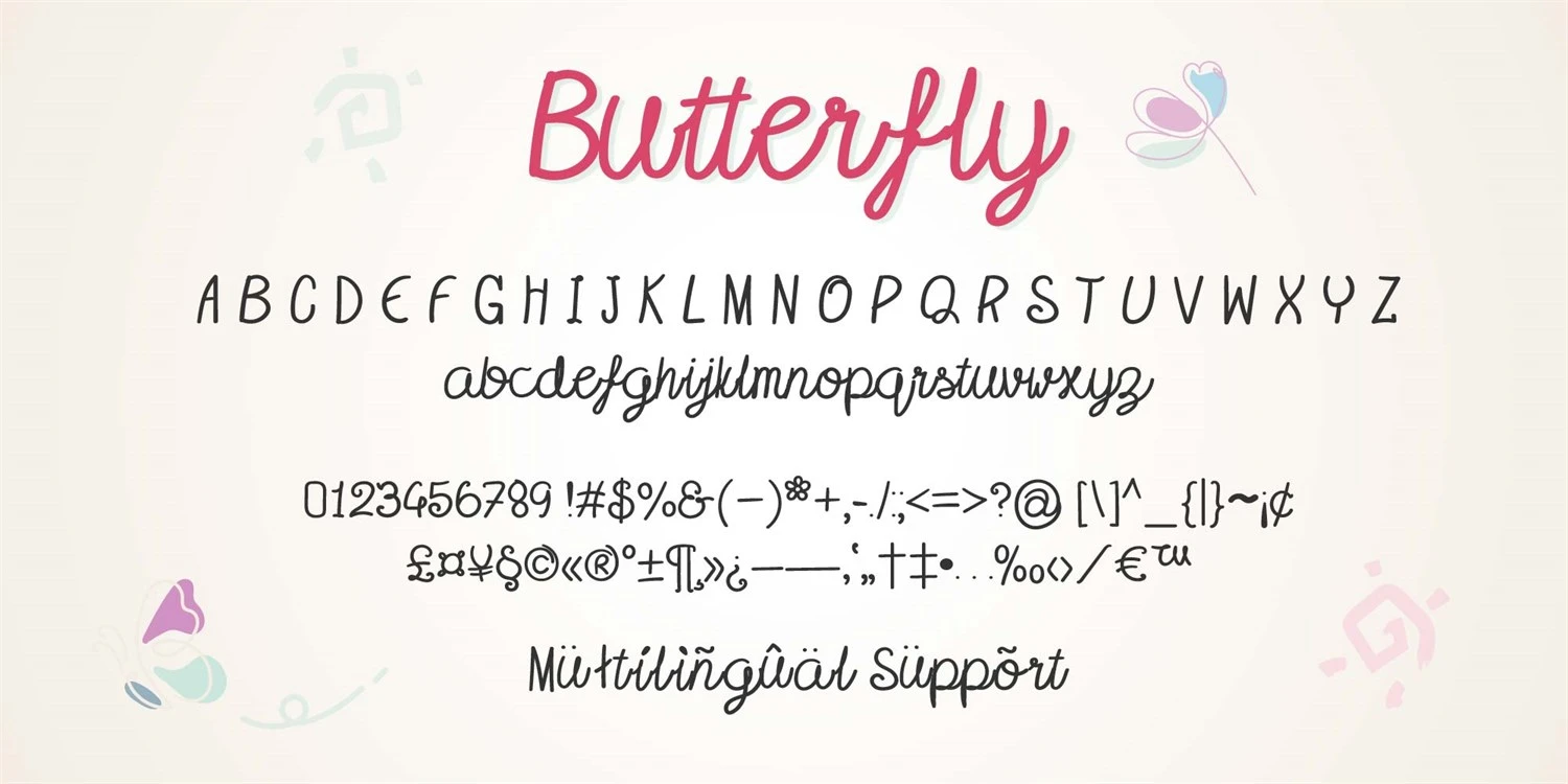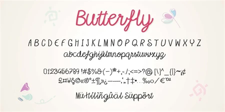 Butterfly font is cute and handwritten font. It's look is informal for all your designs as shirt, cup, card that require a fine touch, This font will be a good choice.