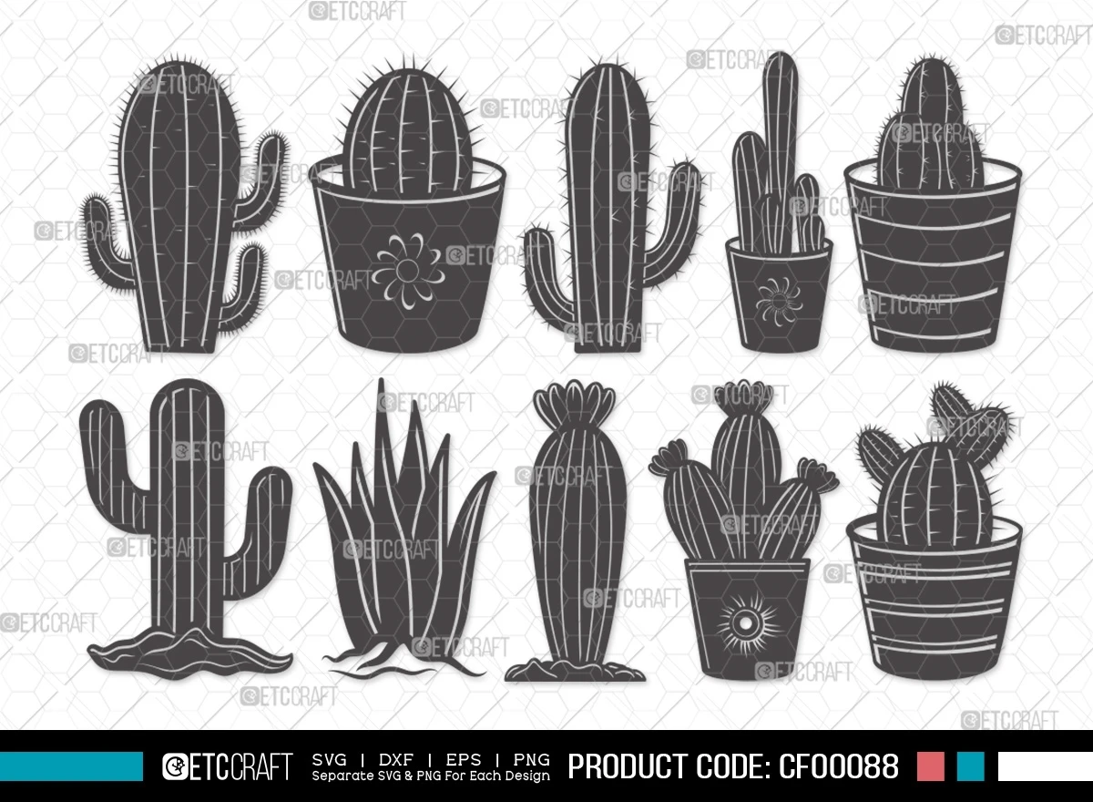 Celebrate the vibrant spirit of summer with our Cactus Silhouette Summer Plant Succulent Pot SVG Bundle. This collection showcases elegantly crafted cactus silhouette designs, perfect for infusing a touch of desert beauty into your creative projects.