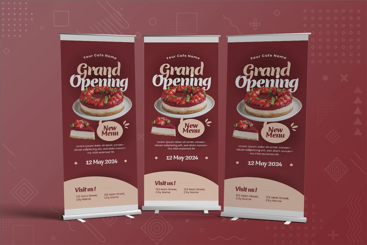 Instantly communicate your brand's through our roll-up banner template. Its standout design is optimized for the impactful presentation of visuals and content alike.