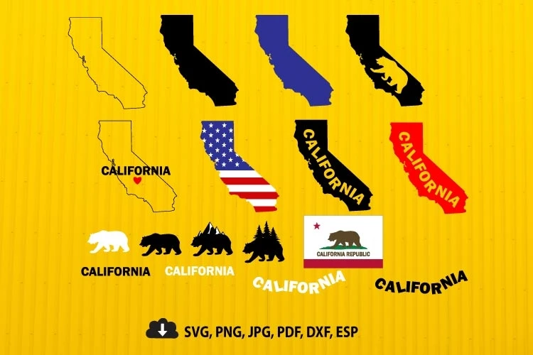 California Map, California State Clipart, California State Map, California Map Flag, California State Silhouette, Cut file, Cricut