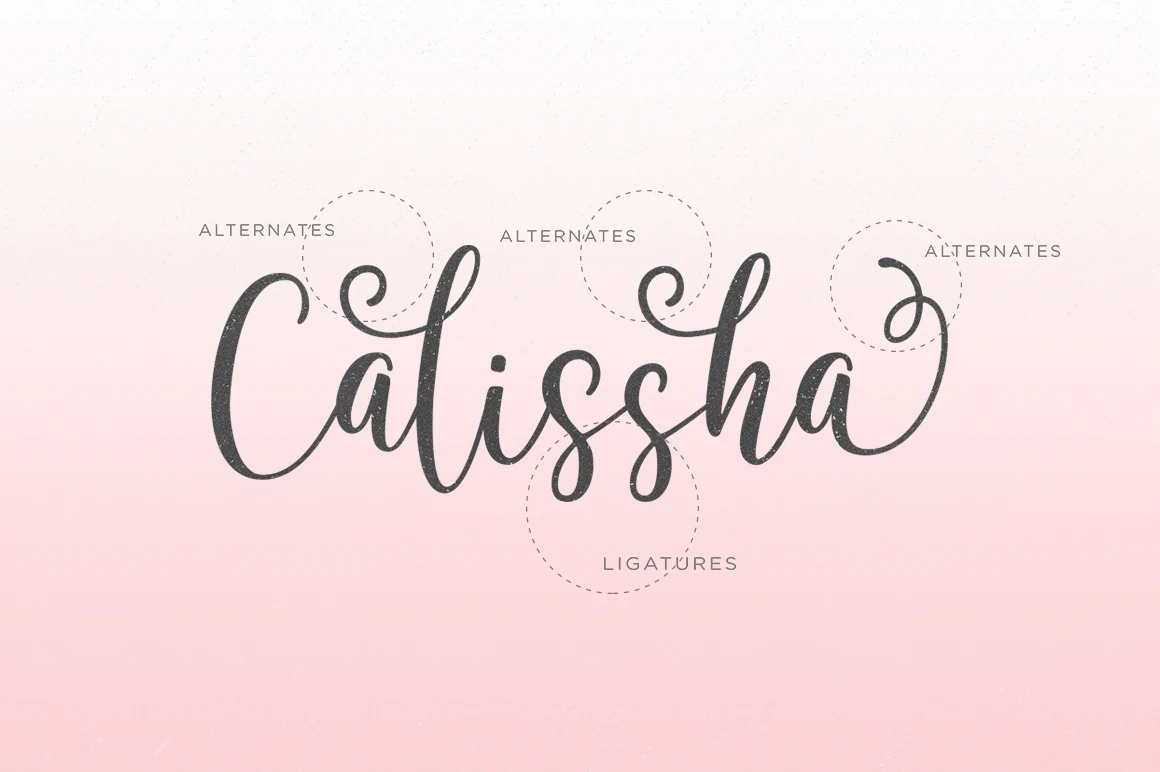 Calissha Font Duo features OpenType stylistic alternates, ligatures and International support for most Western Languages is included. To enable the OpenType Stylistic alternates, you need a program that supports OpenType features such as Adobe Illustrator CS, Adobe Indesign & CorelDraw X6-X7, Microsoft Word 2010 or later versions.