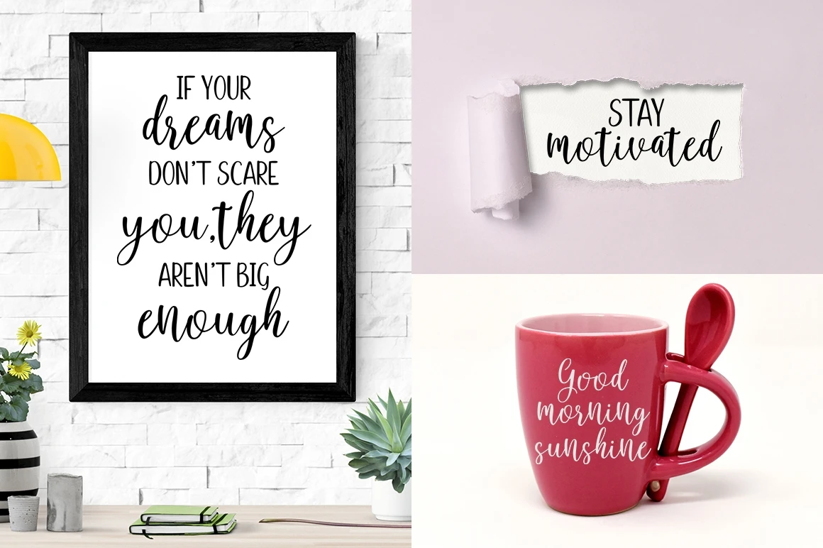 Calissha Font Duo is perfect for use in watercolor design or lettering style bold hand, such as blog header, branding, t-shirt, weddings, social media, product design, stationery, advertising, apparel, cover books, business cards, greeting cards, branding, merchandise, invitations and handmade quotes and more.