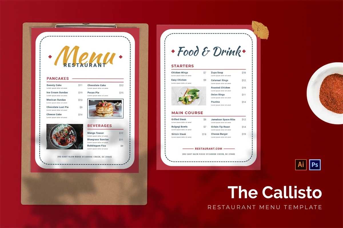 Callisto - Restaurant Menu. This template is great for your business and will make your customers interested, elegant, and easily editable according to your needs, this restaurant menu is perfect for, promos, cafes, hotels, resort shops online. etc. I hope you enjoy this restaurant menu
