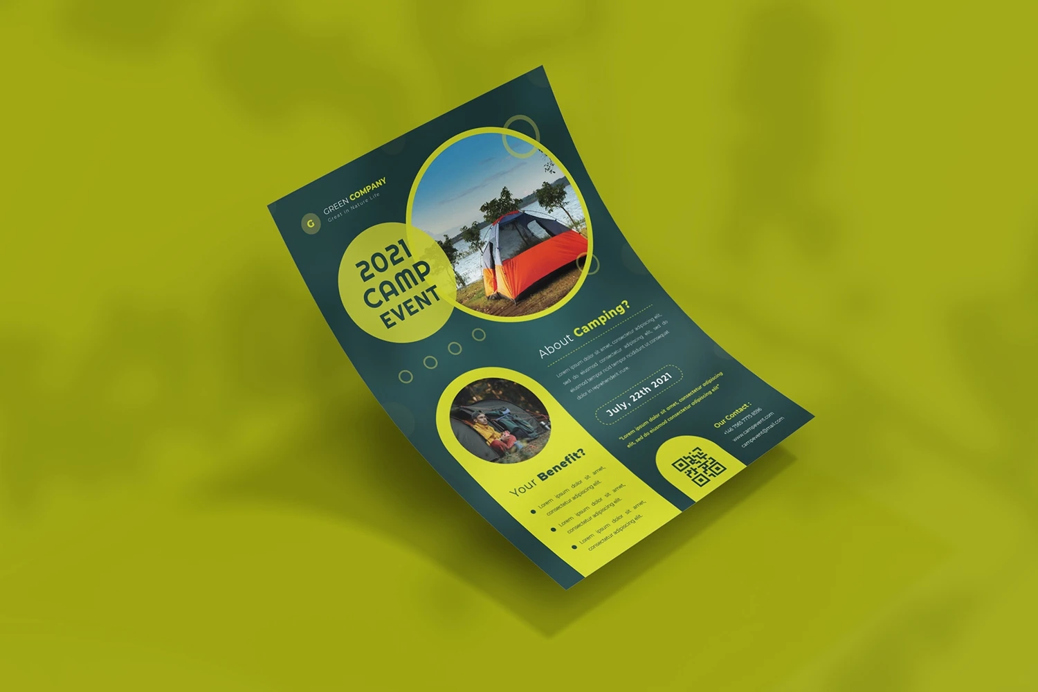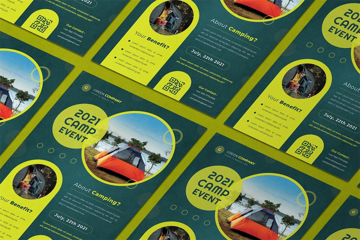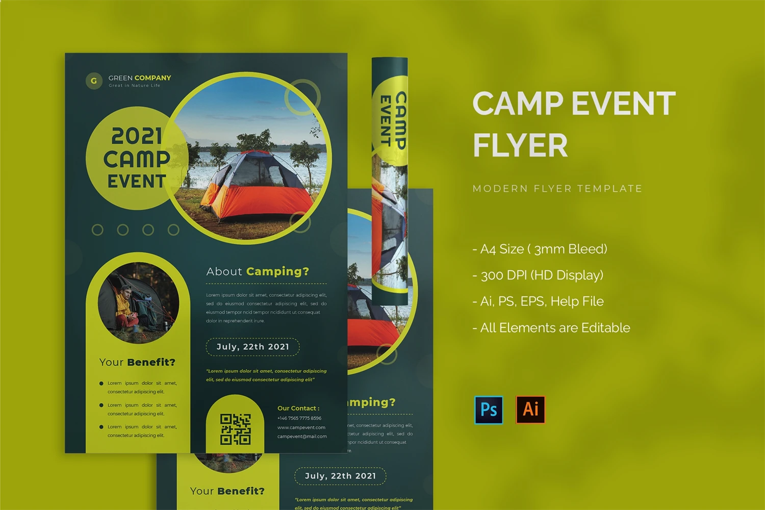 Camp Event - Flyer. This Flyer template is designed for your company's business needs. very clean and elegant, and also easily edited and adjusted to your liking