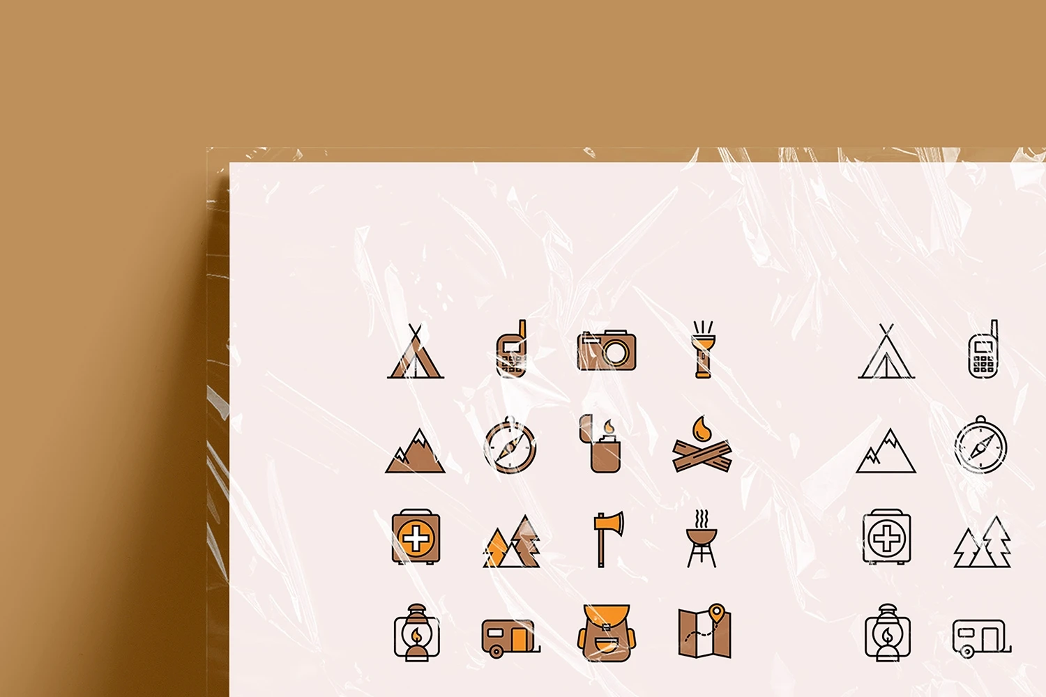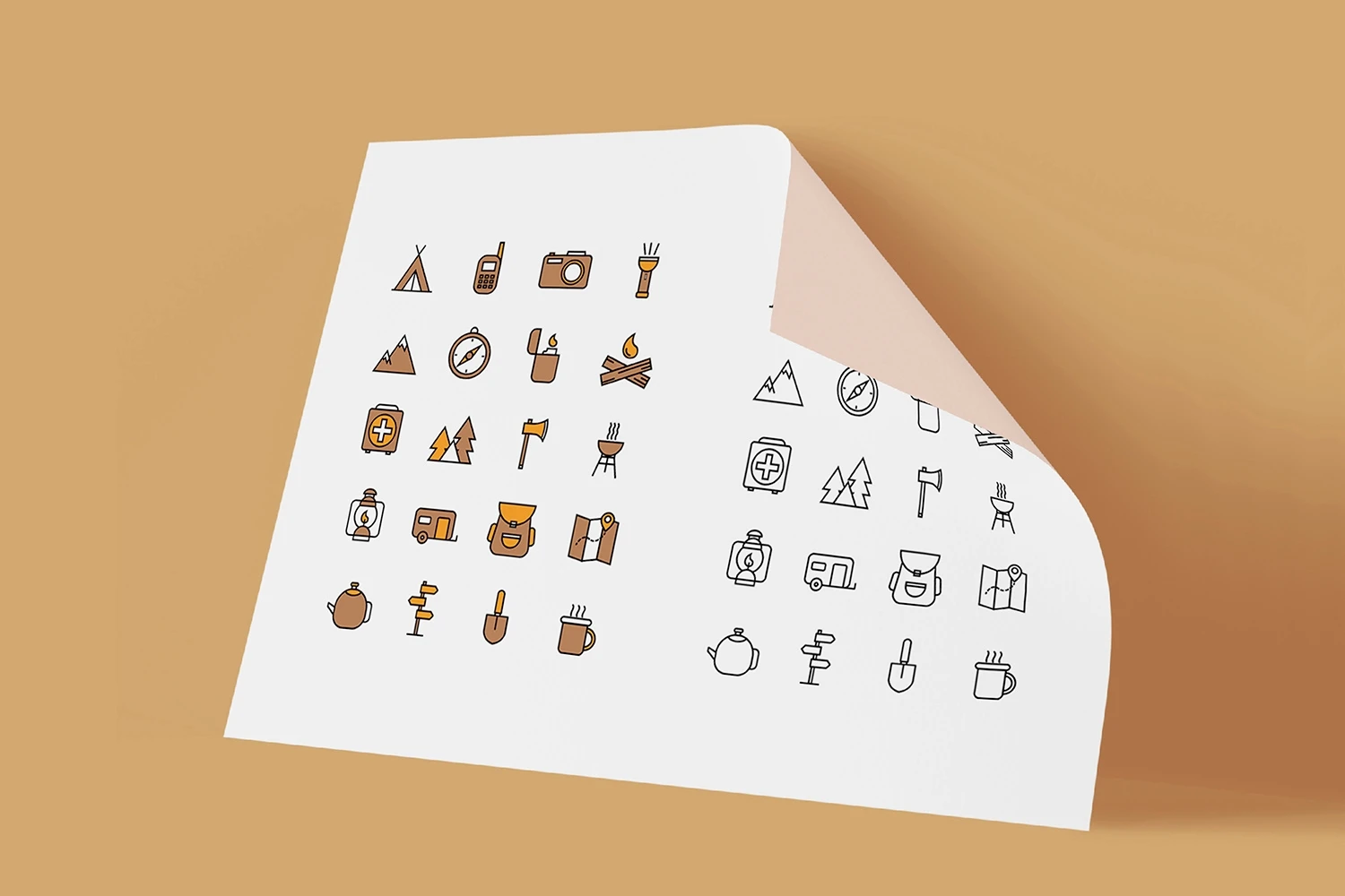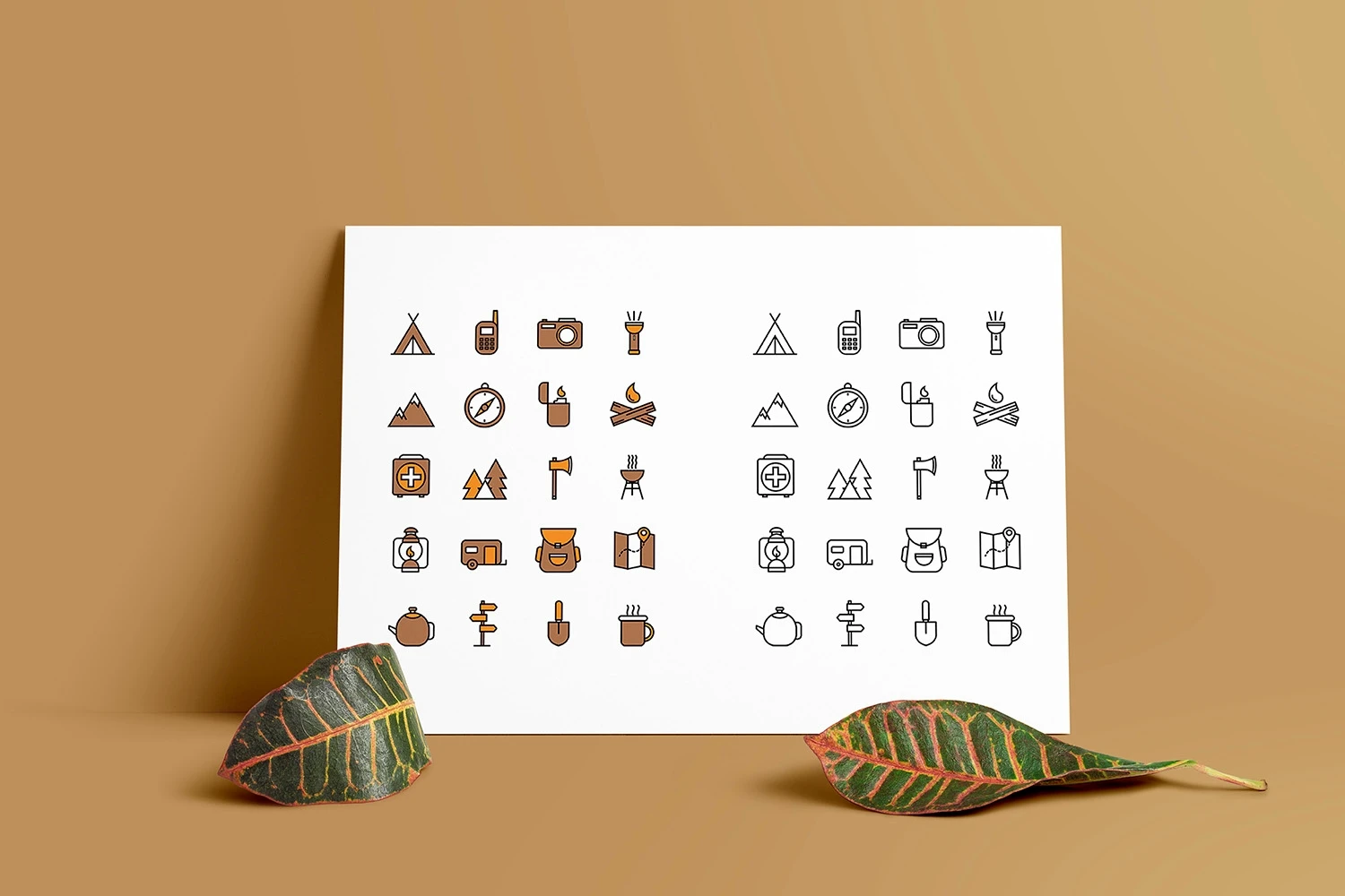 Don't miss it Camping - Icons This professional Icons pack, high quality, for professional designers, easy to use, fully editable & customizable in Adobe Illustrator