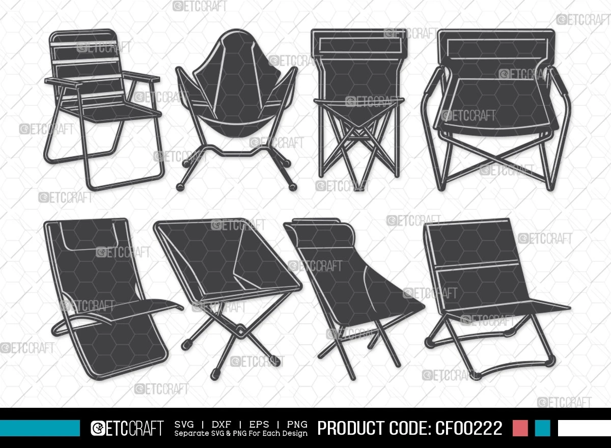 Elevate your creative projects and showcase your passion for outdoor adventures with the Camping Chair Silhouette Folding Lawn Chair Summer Beach SVG Cut File Bundle. Transform your outdoor-inspired concepts into captivating works of art. Get started on your projects today!