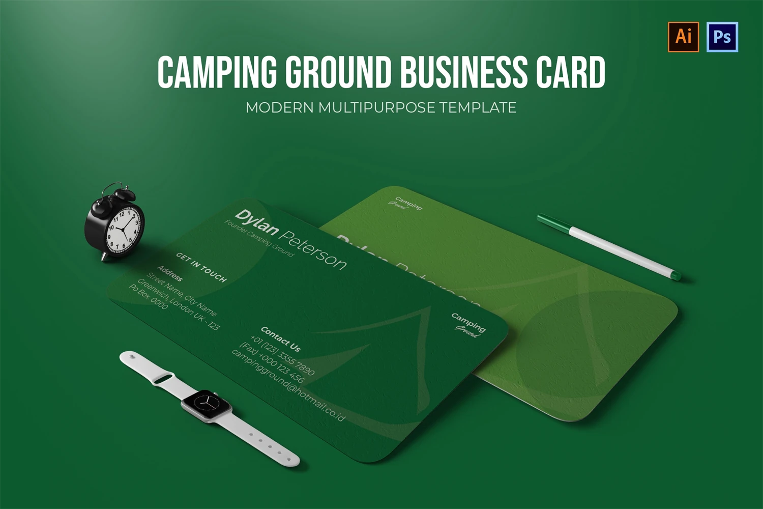 This Camping Ground - Business Card make your business cards look professional. You can use this business card for, identity, company business cards, Corporate Business, Creative, Blogs, Photographers, Artists, Designers, etc.