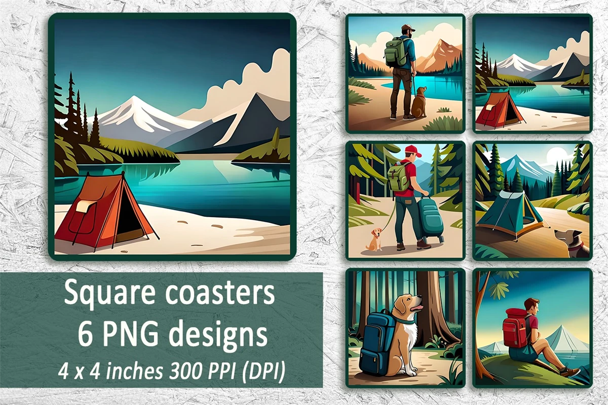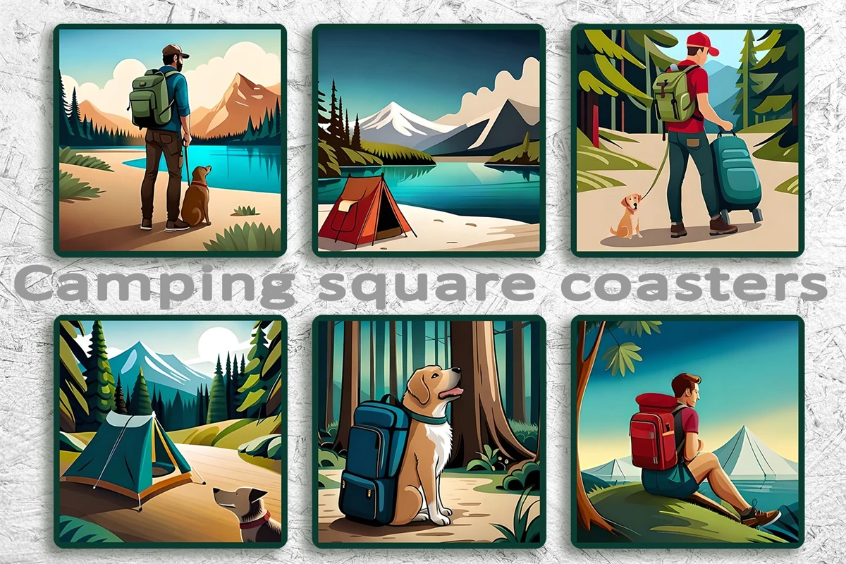 Camping Square Coaster Sublimation Coaster Designs bundle