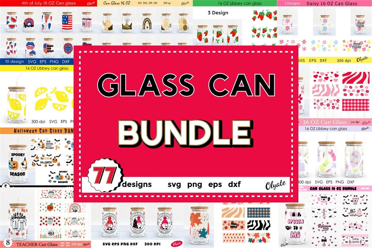 The bundle contains 77 designs SVG, EPS, PNG and DXF formats.
