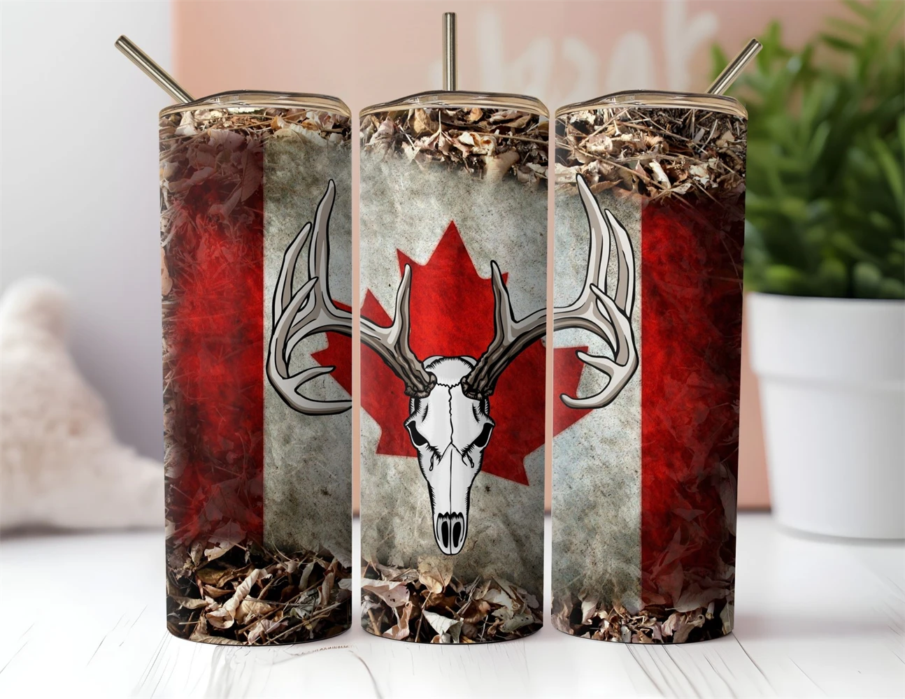 Canadian Camo Skull Tumbler Wrap, 20oz Skinny Tumbler Wrap