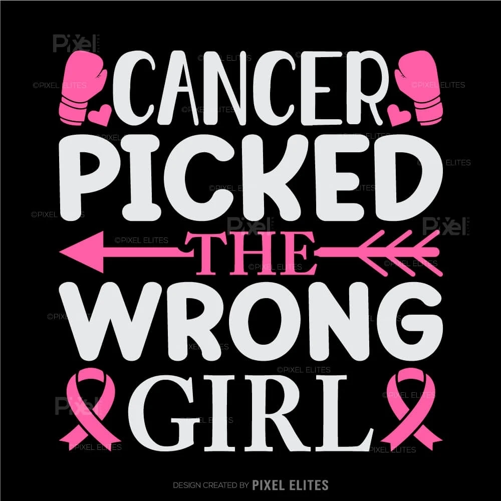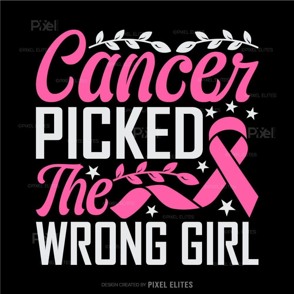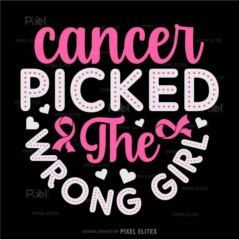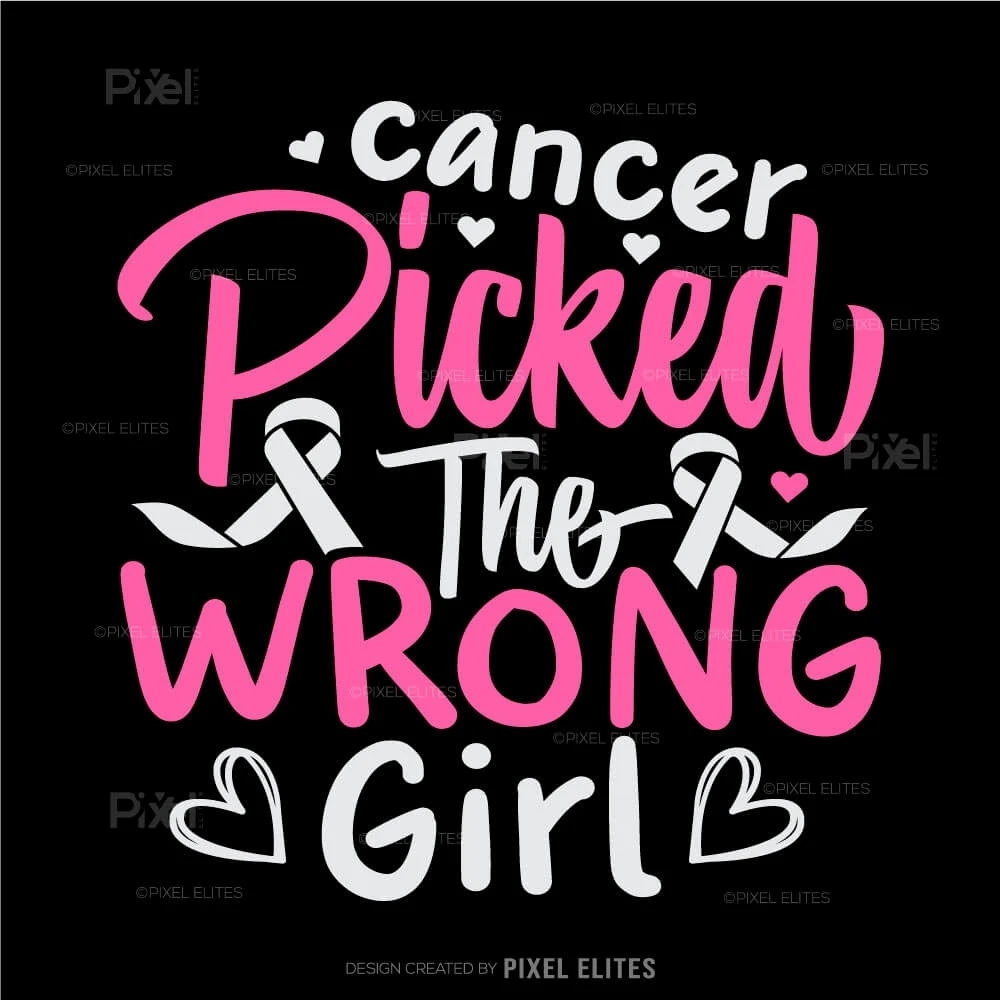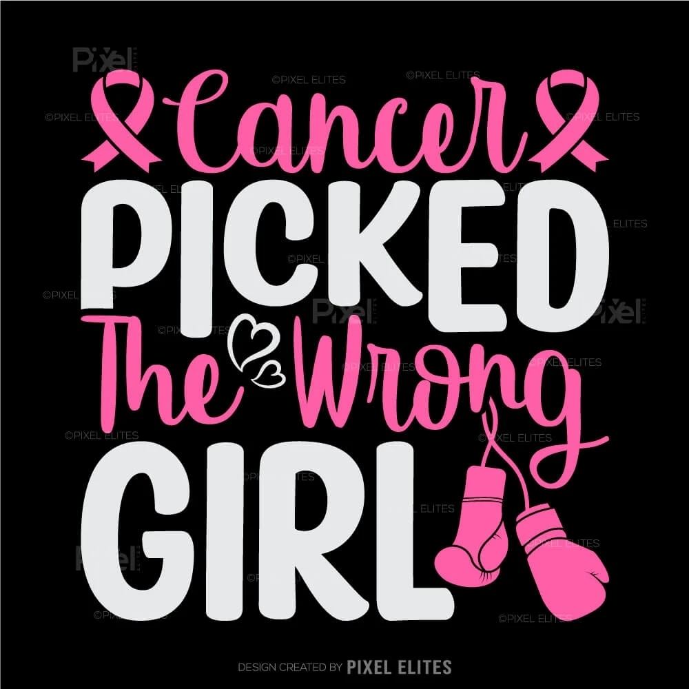 Cancer Picked the Wrong Girl SVG Cut Files T-Shirt Design & Pink Ribbon Vinyl Decal for Breast Cancer Survivors Together We Fight