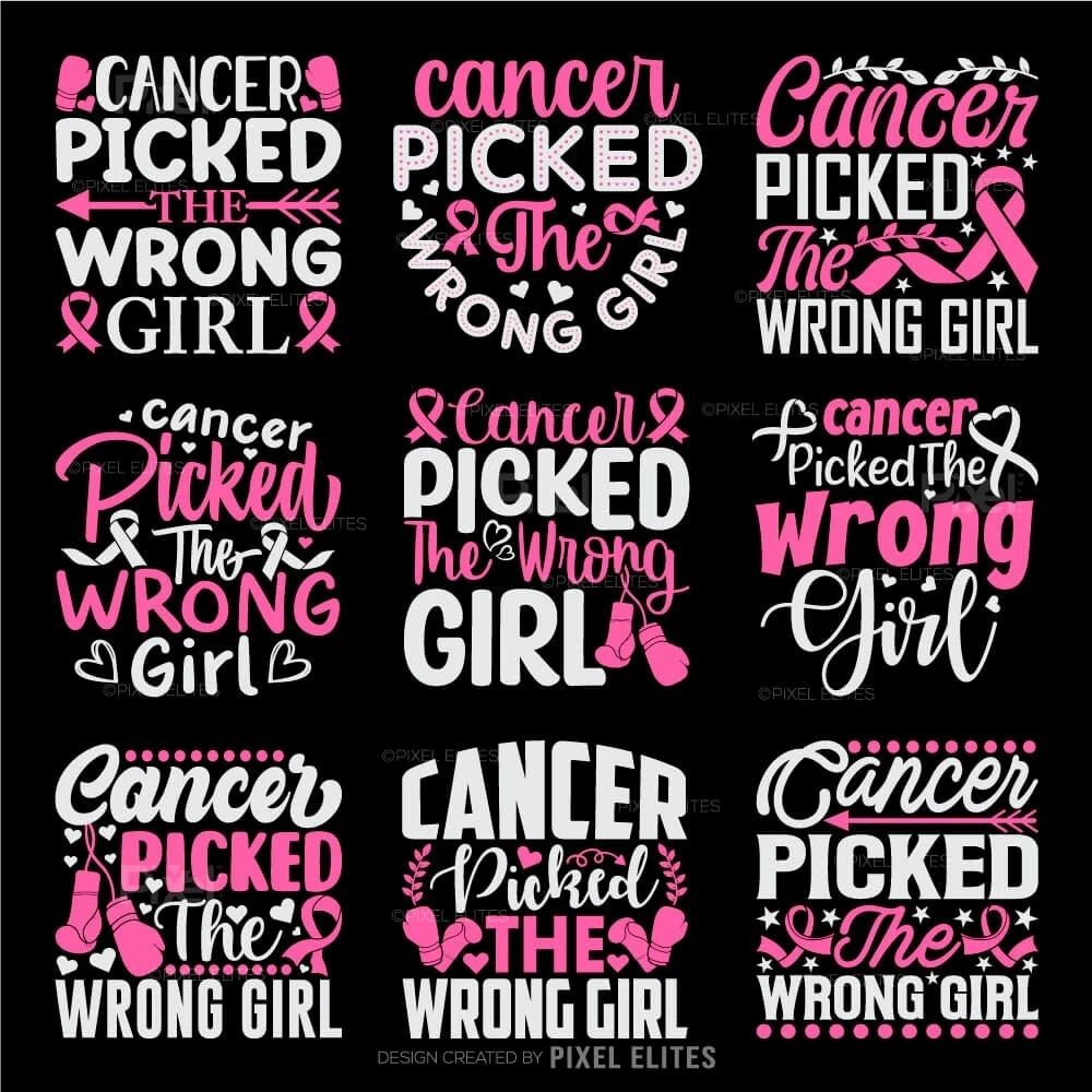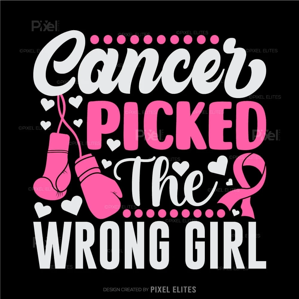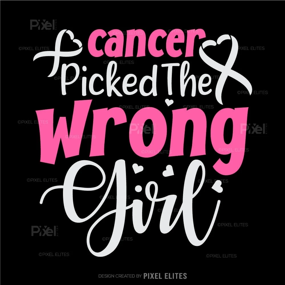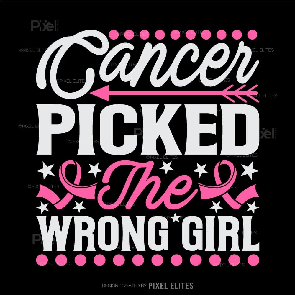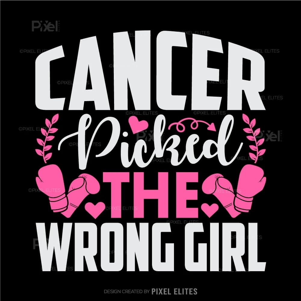 Cancer Picked the Wrong Girl SVG Cut Files T-Shirt Design & Pink Ribbon Vinyl Decal for Breast Cancer Survivors Together We Fight
