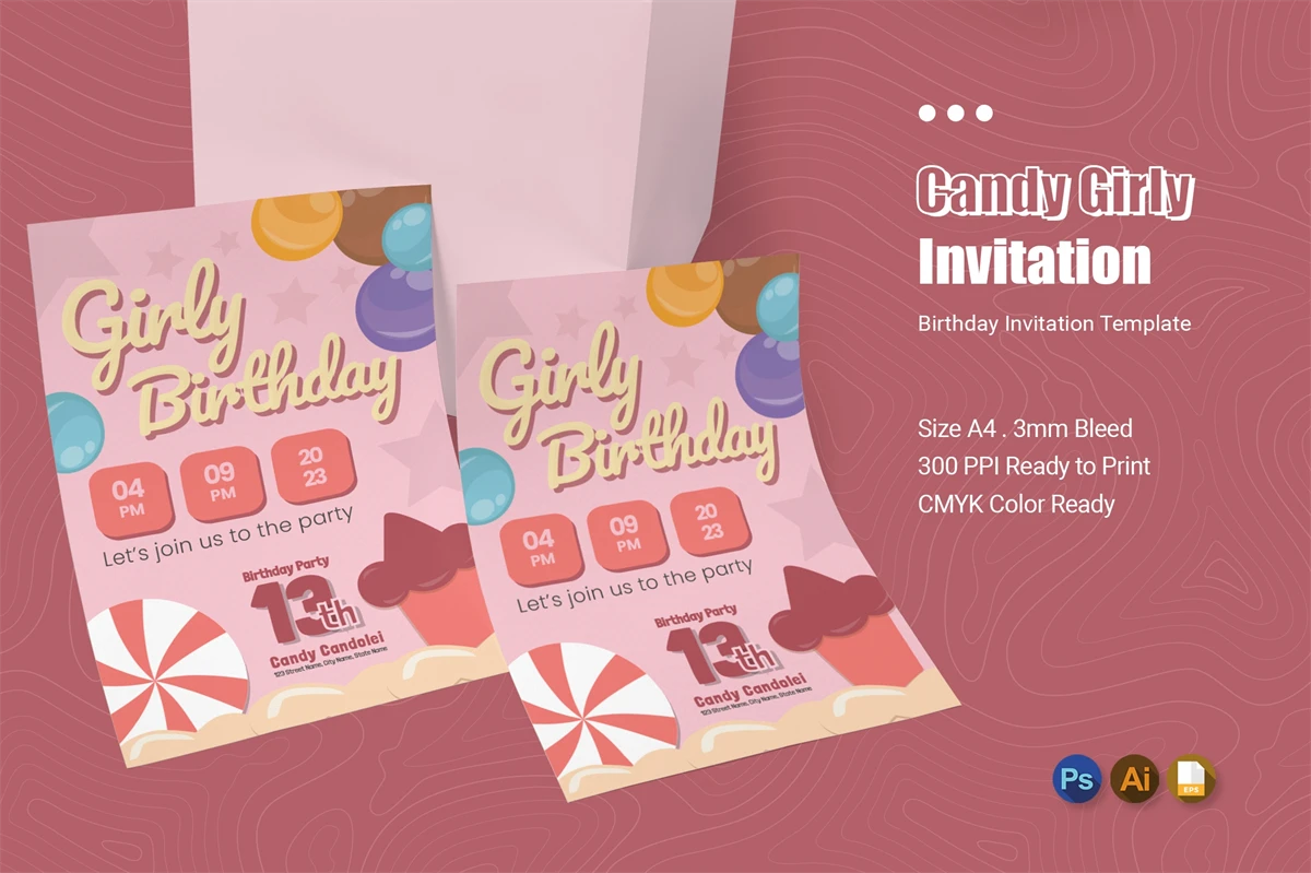 **Candy Girly Birthday Invitation**