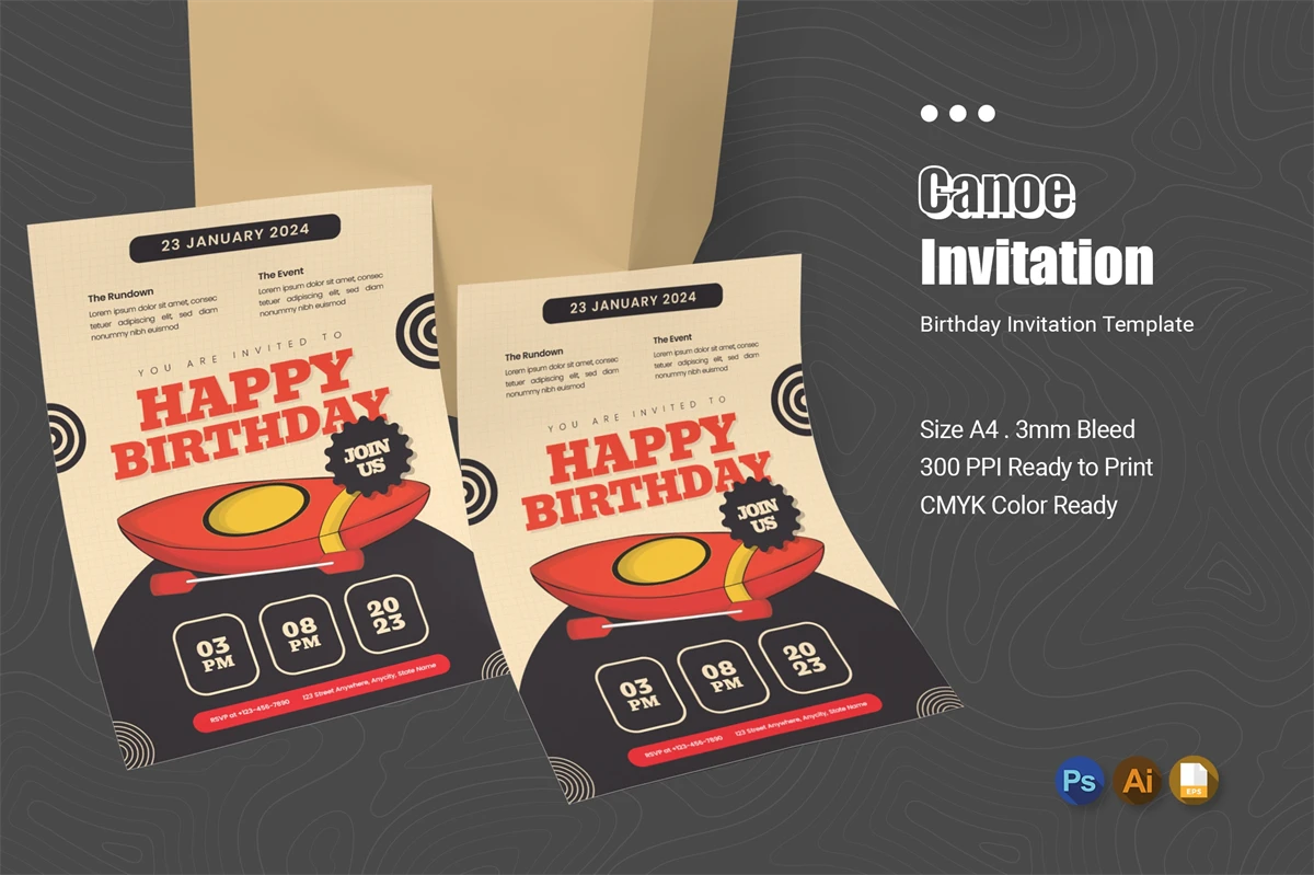 Of course you want to invite friends to your birthday party with the best invitations! Impress the invited guests with your style of invitation, by using this invitation card template. You can easily edit & customize each of the designs because every component is well organized and editable.