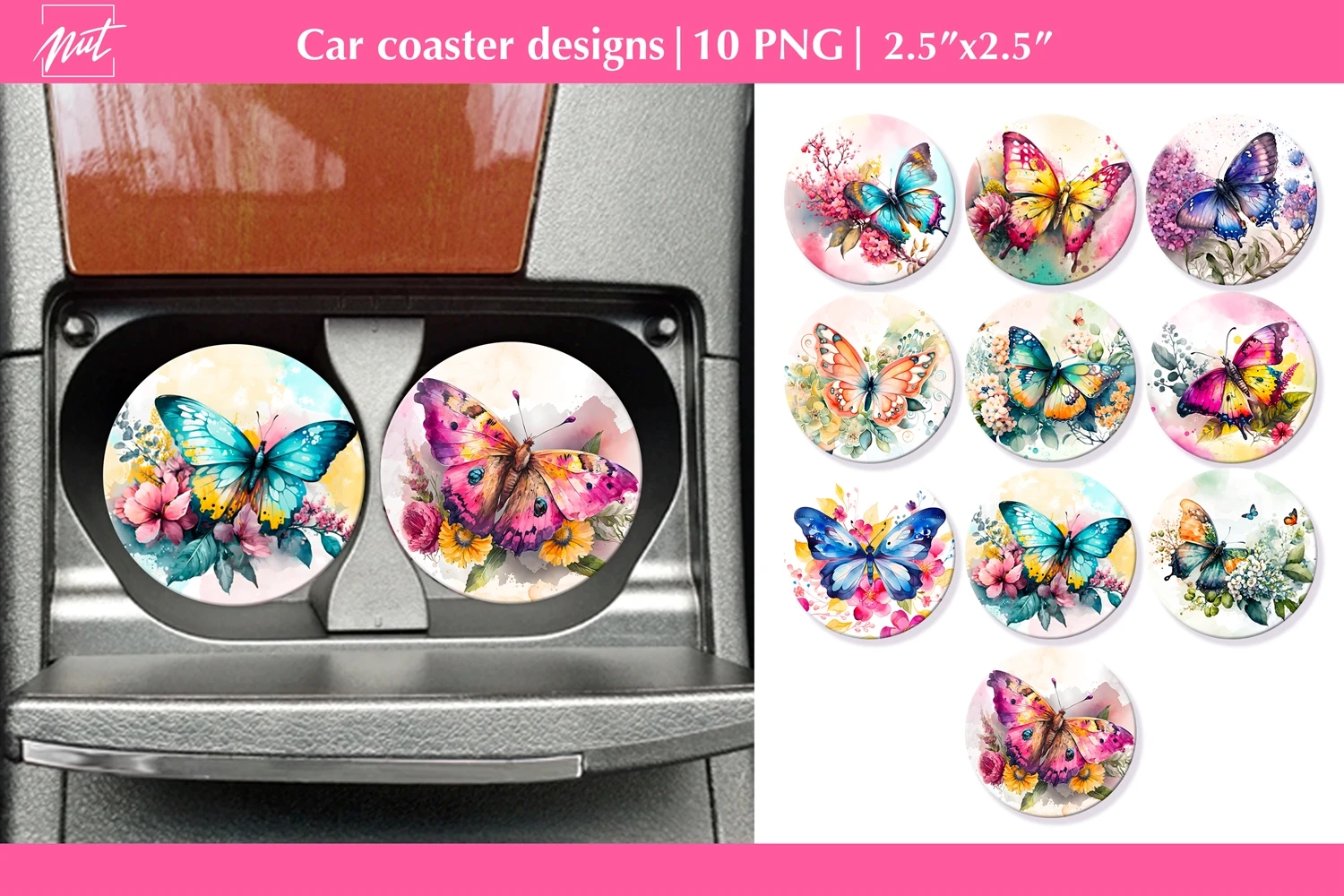 Bright 10 butterfly car coaster sublimation designs for good summer mood