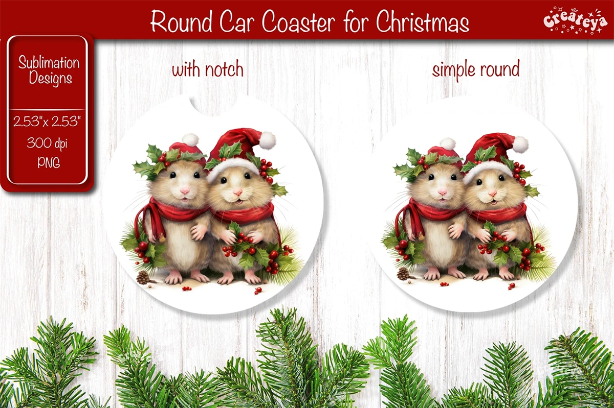 Car coaster Coaster Christmas Sublimation with cute Christmas Baby Animals PNG. These car coasters 2.53'' x 2,53'' is more than just a way to protect your table it bring a touch of a warm, fuzzy feeling to your home decor.