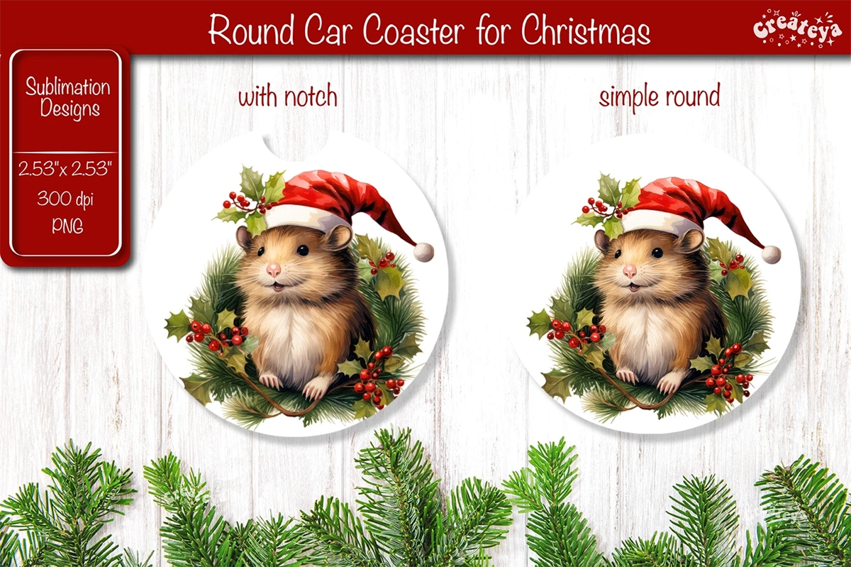 Car coaster Coaster Christmas Sublimation with cute Christmas Baby Animals PNG. These car coasters 2.53'' x 2,53'' is more than just a way to protect your table it bring a touch of a warm, fuzzy feeling to your home decor.
