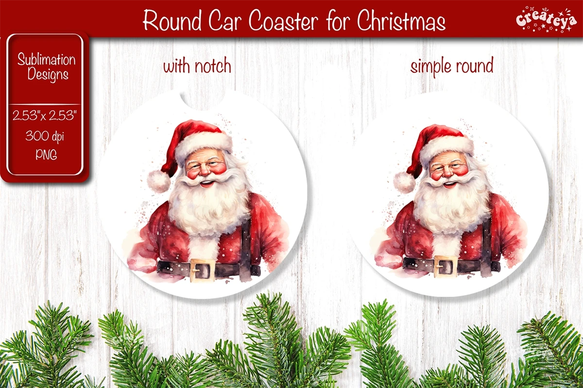 Car coaster Coaster Christmas Sublimation with cute Watercolor PNG. This car coaster 2.53'' x 2,53'' is more than just a way to protect your table it brings a touch of snow-filled charm and a warm, fuzzy feeling to your home decor.