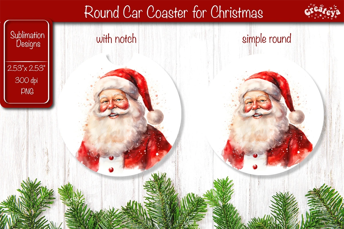 Car coaster Coaster Christmas Sublimation with cute Watercolor PNG. This car coaster 2.53'' x 2,53'' is more than just a way to protect your table it brings a touch of snow-filled charm and a warm, fuzzy feeling to your home decor.