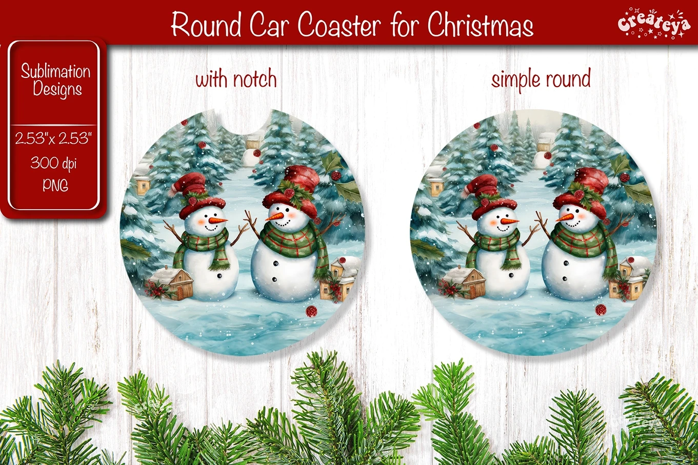 2 PNG file 300 dpi. The Car Coaster with a notch is sized at 2.53'' x 2.53'' 760x760 px
