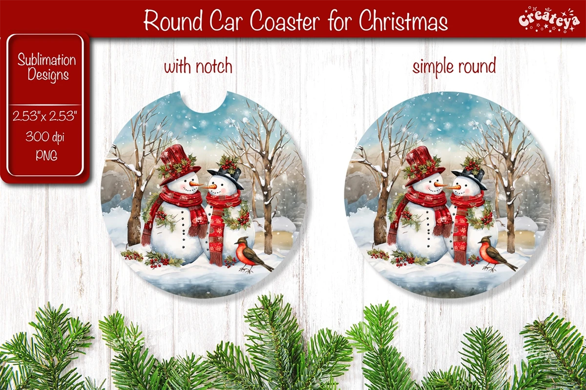 Car coaster Coaster Christmas Sublimation with cute Christmas Snowman PNG. This car coaster 2.53'' x 2,53'' is more than just a way to protect your table it brings a touch of snow-filled charm and a warm, fuzzy feeling to your home decor.