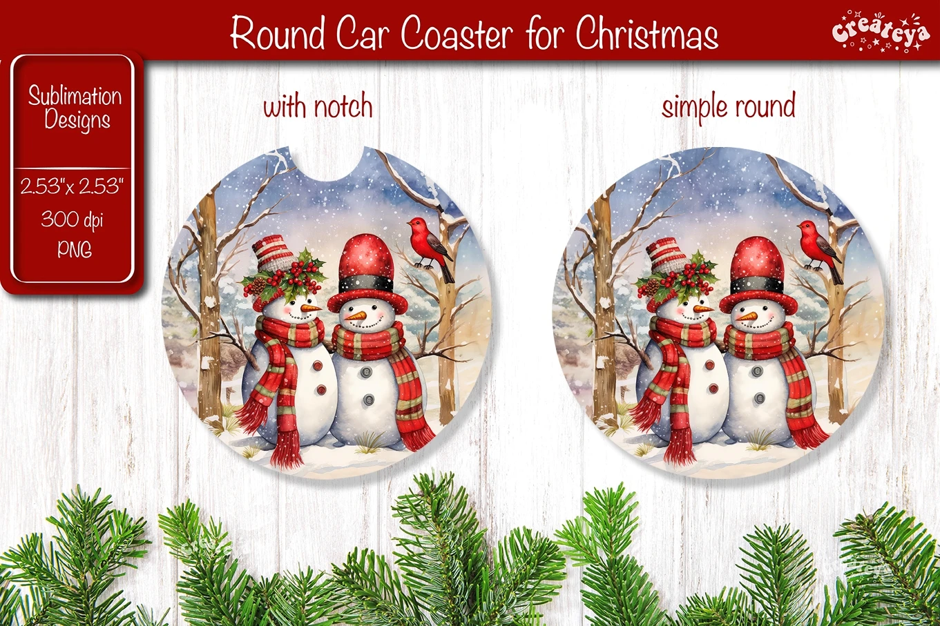 2 PNG file 300 dpi. The Car Coaster with a notch is sized at 2.53'' x 2.53'' 760x760 px