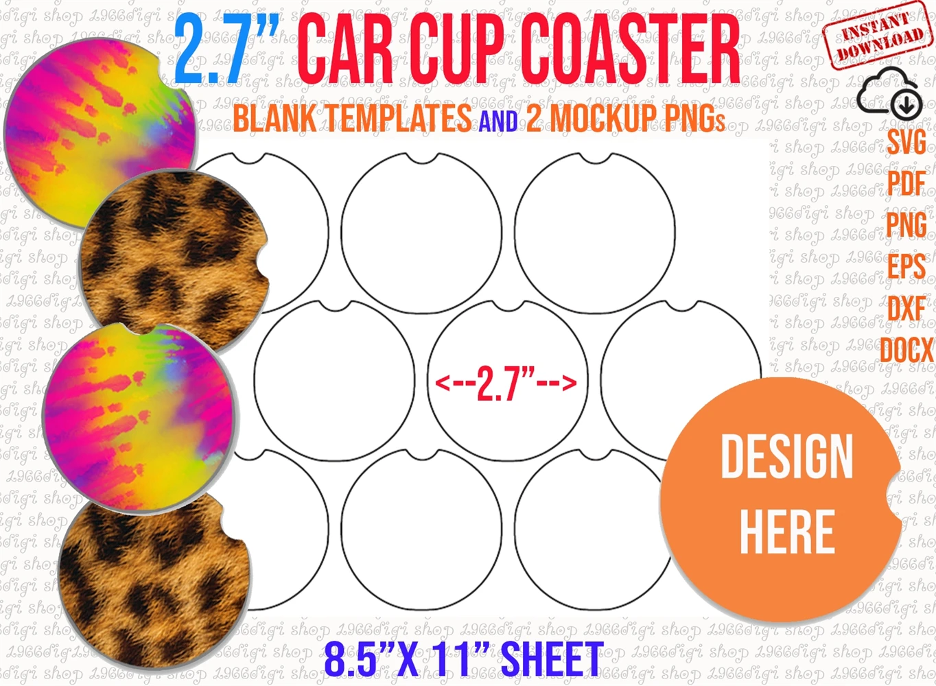 Graphics are sized to fit the Car Cup Coaster 2.7"