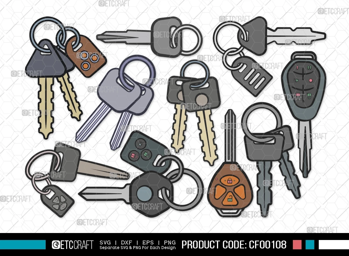 Unlock the creativity within you and bring a touch of automotive passion to your projects with our Car Keys Clipart Key Fob Ring SVG Cut File Bundle. Transform your crafts into automotive masterpieces and make a statement that drives! Get your bundle today and let the crafting adventure begin.