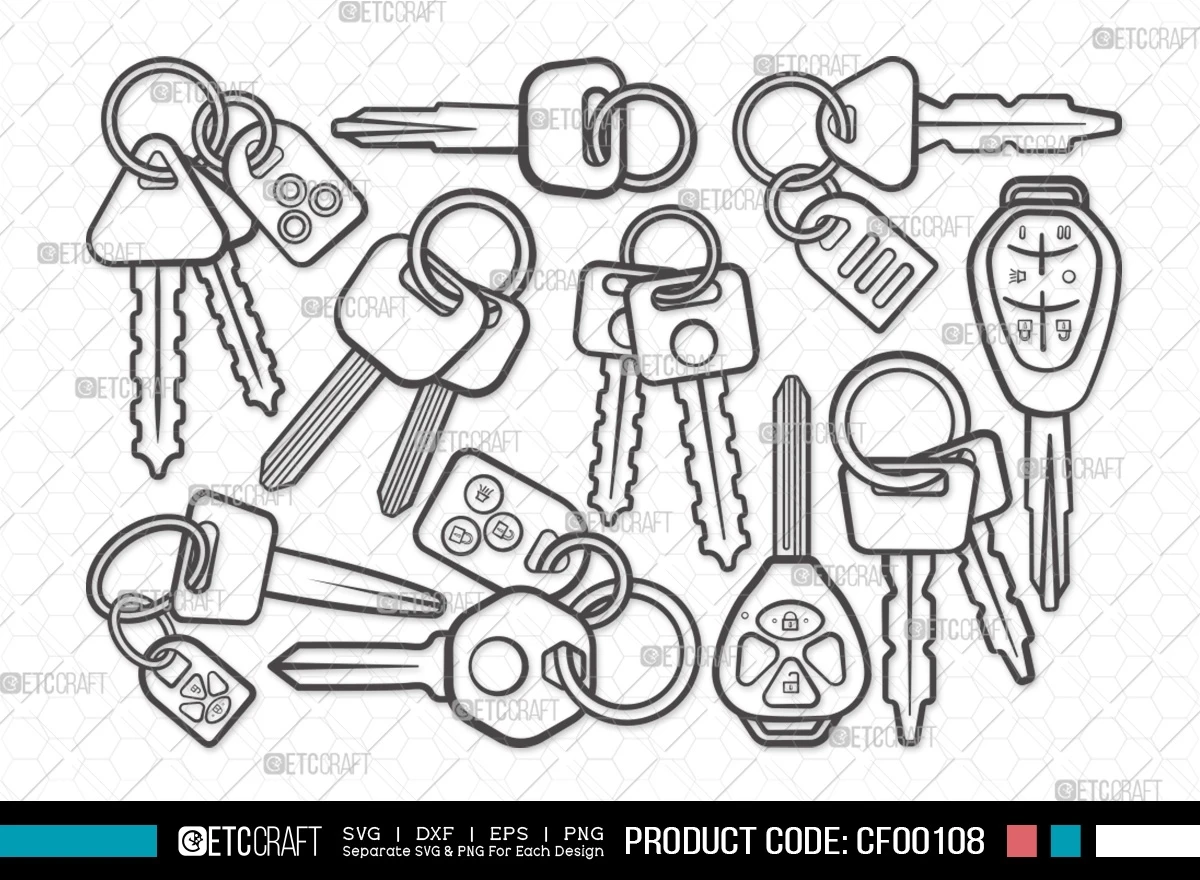Unlock your creativity and bring the automotive world to life with our Car Keys Outline Key Fob Ring SVG Cut File Bundle. Craft with passion and precision, and drive your projects to new heights. Start your crafting journey today!