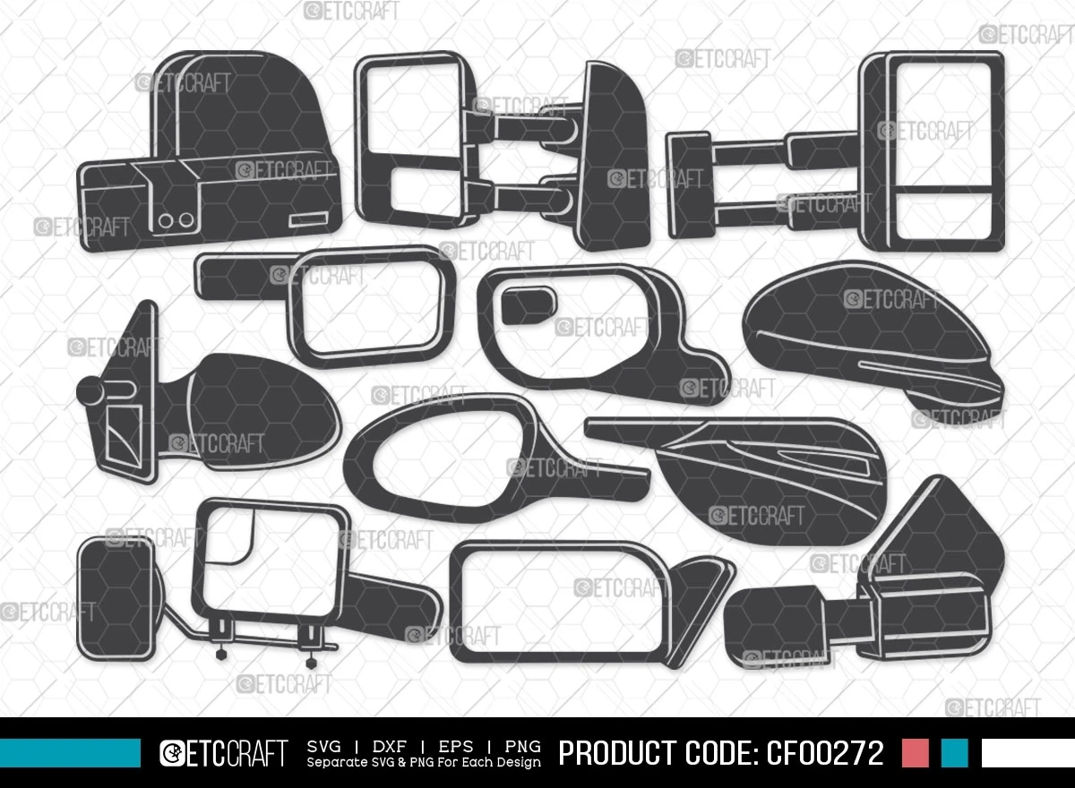 Introducing our Car Mirror Silhouette Car Side Rear View Mirror SVG Cut File Bundle a versatile and practical collection of high-quality clipart and SVG files designed to add a touch of functionality and style to your creative projects. This bundle features a variety of car side rear view mirror-themed silhouette illustrations, perfect for enhancing your designs with elements of automotive design and safety.