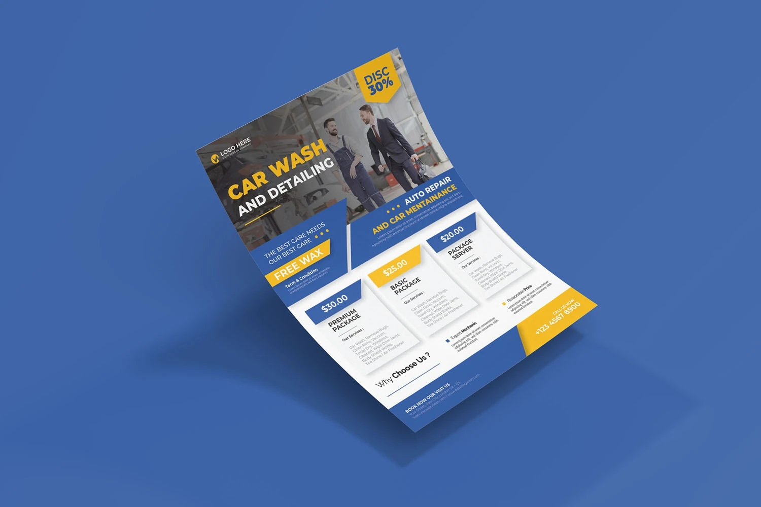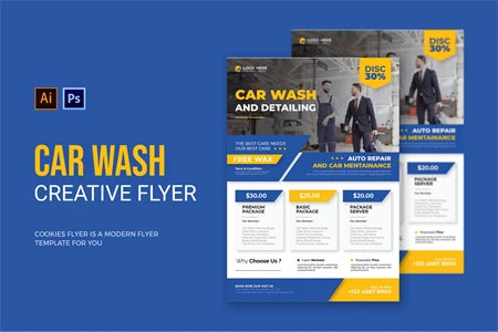 Car Wash - Flyer. This Flyer template is designed for your company's business needs. very clean and elegant, and also easily edited and adjusted to your liking