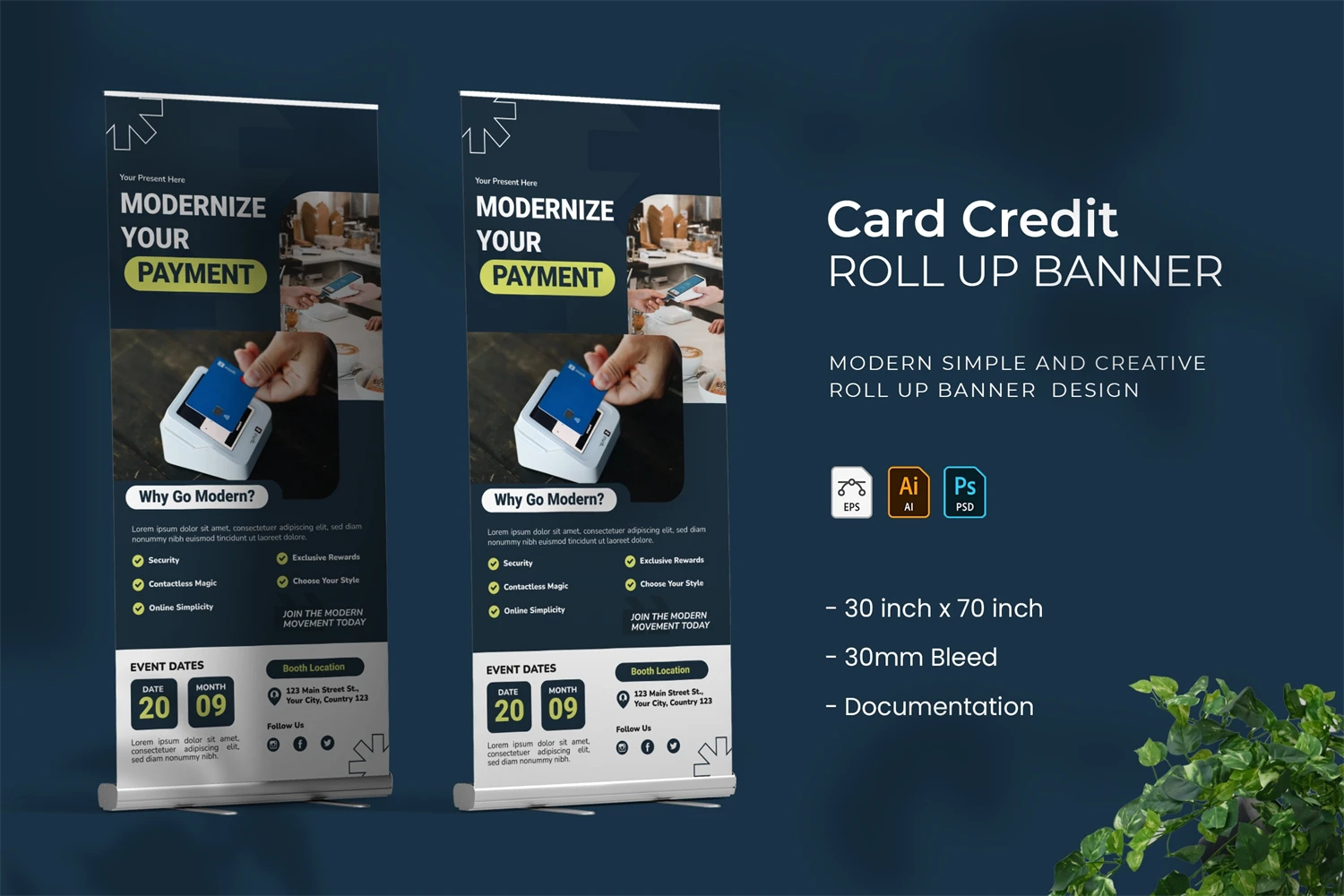 Roll-Up Banner Template: This is the best way to sell more furniture if you are selling it. With this beautiful roll-up banner, you can beat out your competitors and make your sales area look better. When you want to make an impression, its very important that your banner stand has the right design and information. Bring your project to the next level and see what can be done.