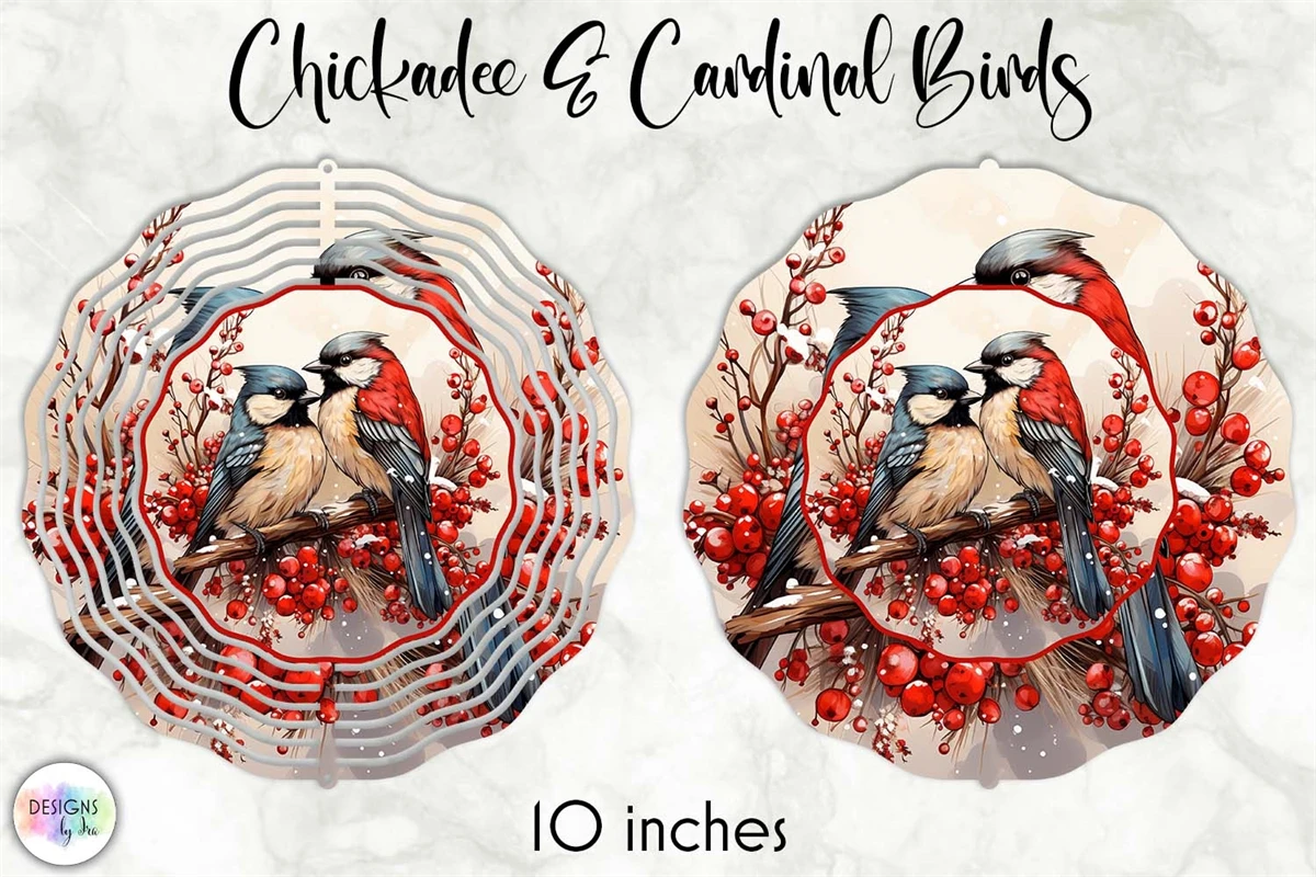 Cute chickadee and cardinal birds wind spinner design.
