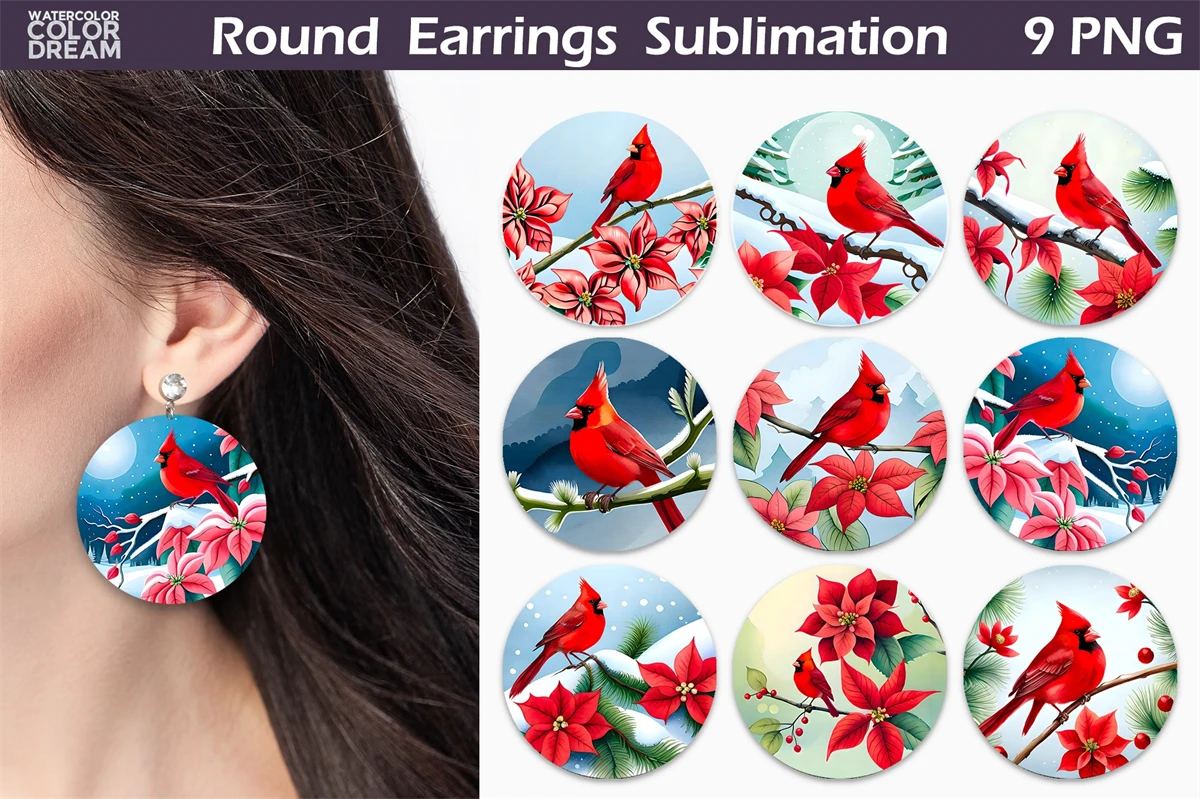 Cardinal Round Earrings. Cardinal Poinsettia Earrings