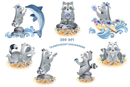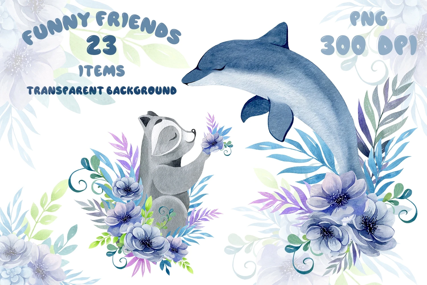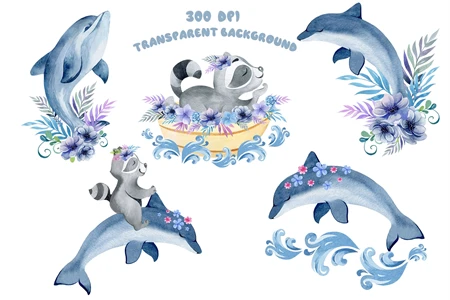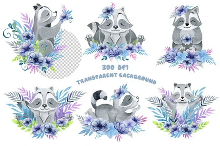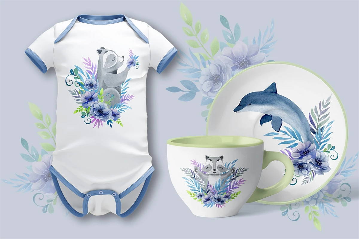 This is a high-quality children's set of ready-made compositions. Bright flowers and animals. Made in watercolor technique. Perfect design for kids crafts, greeting cards, apparel, blogs, posters, decor, sublimation and more.