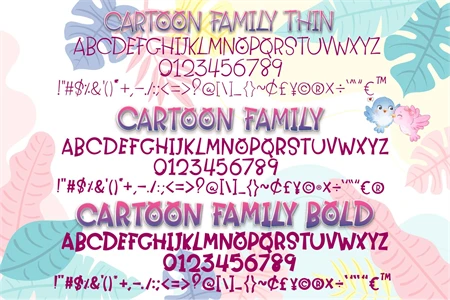 Cartoon Family Font is a cool and friendly display font that brings a playful and authentic vibe to your designs. This fun font is perfect for children activities, school projects, storybooks, posters, and more. With its chunky letter style, Cartoon Family Font adds a touch of liveliness and personality to any design. Let your creativity soar and watch your designs come alive with this captivating font.