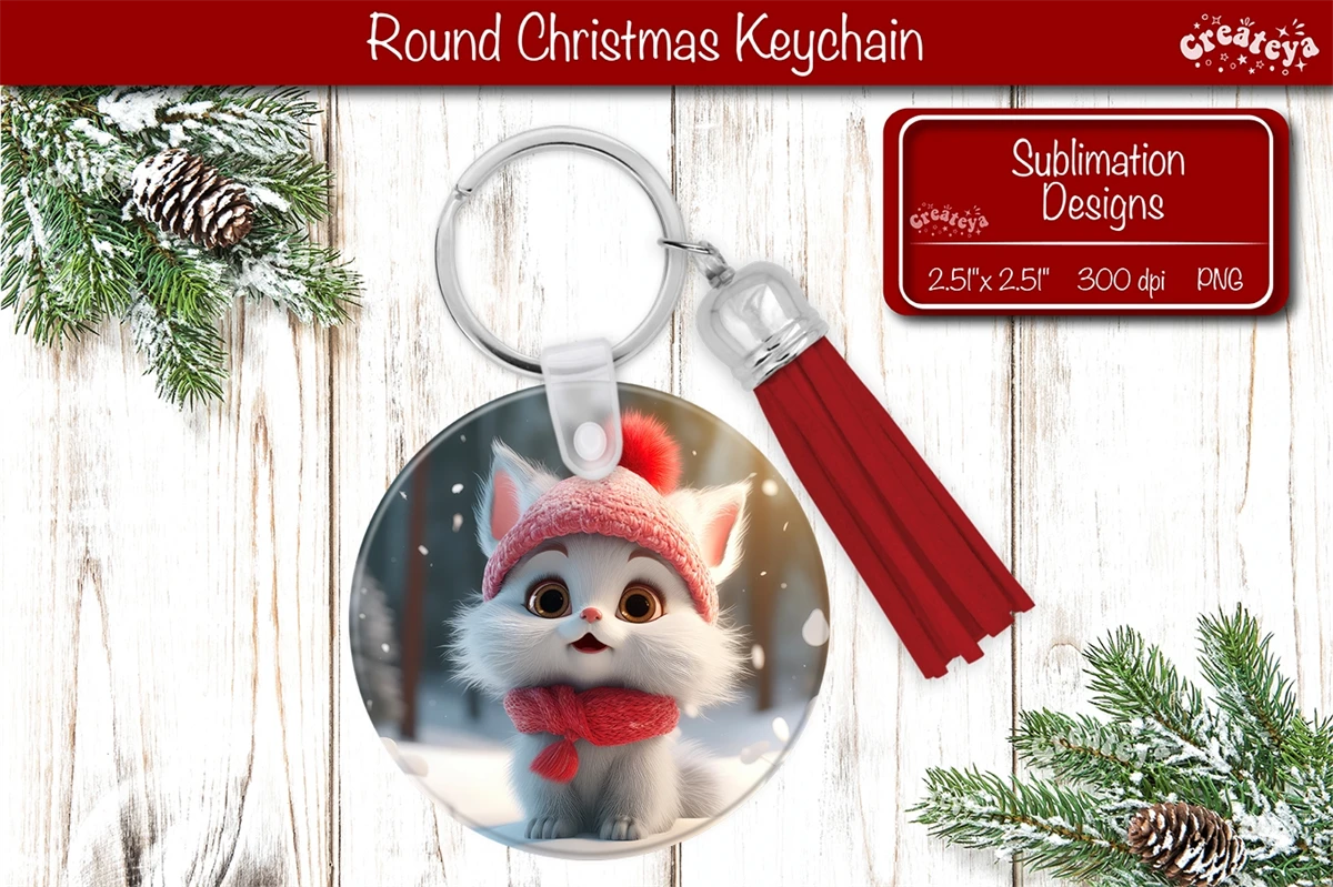 Christmas keychain sublimation designs with cute Christmas Baby Animals print Round Keychain PNG. Christmas Sublimation Round Keychain Perfect as a delightful gift.