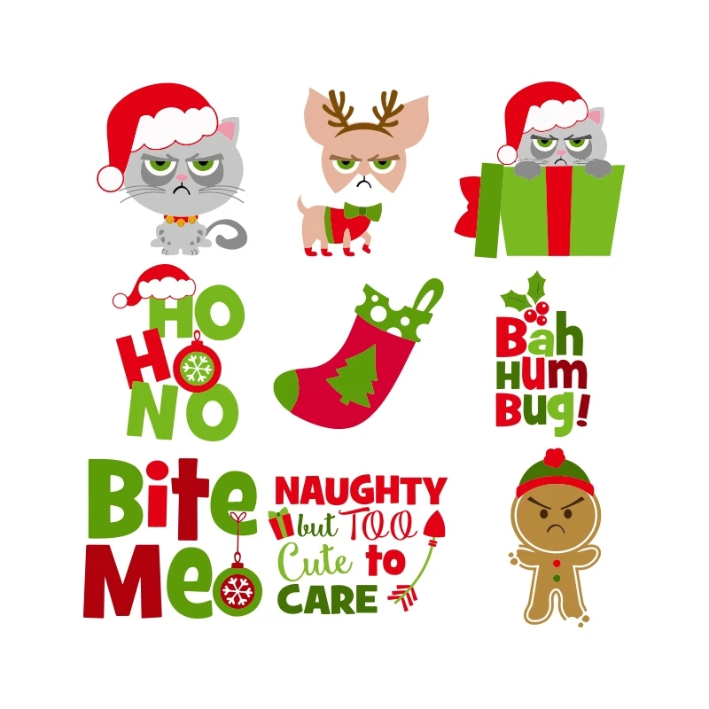 Cat Christmas Svg Bundle, Bah Humbug Grumpy Cat Svg