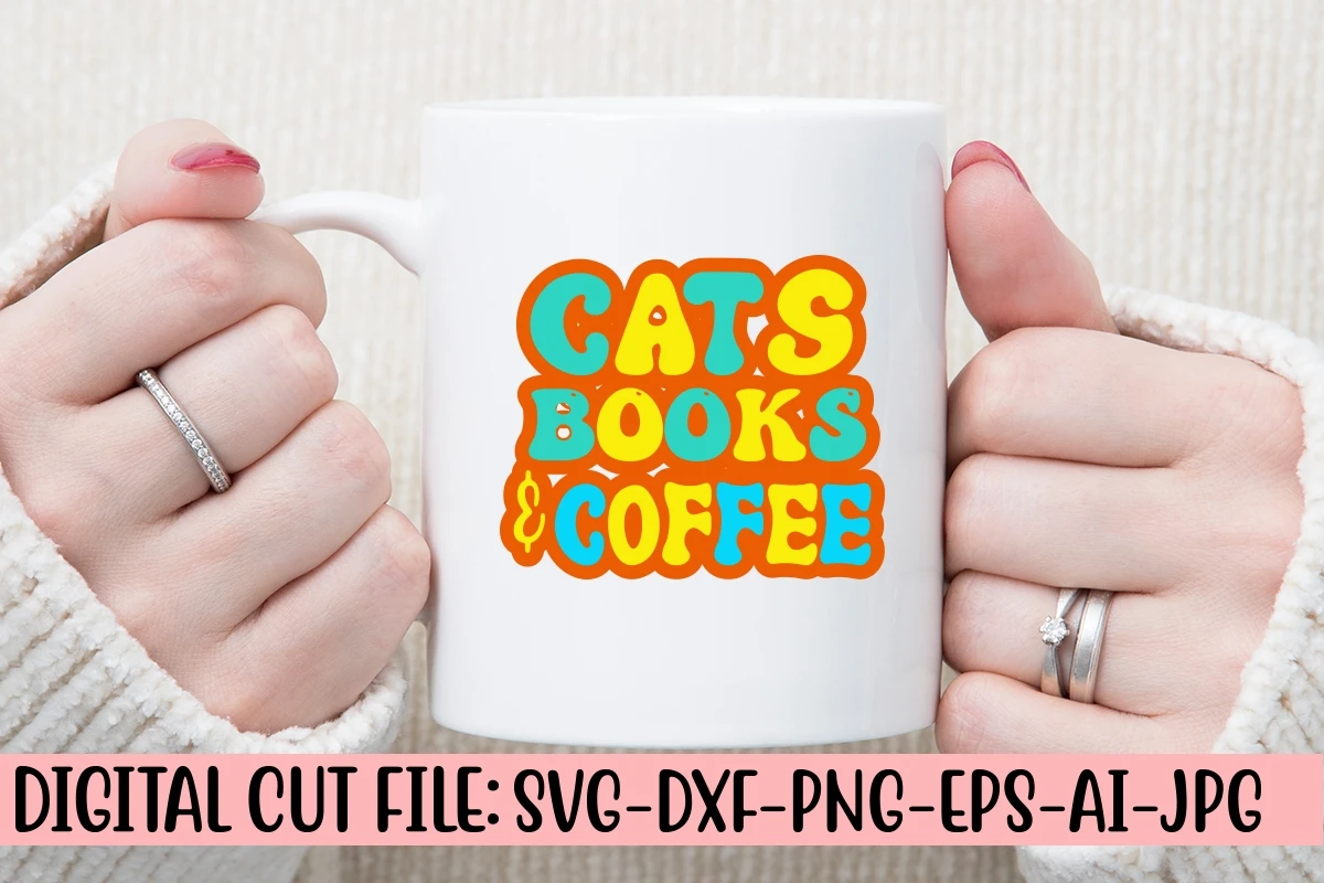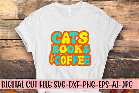 Cats Books & Coffee Retro SVG
