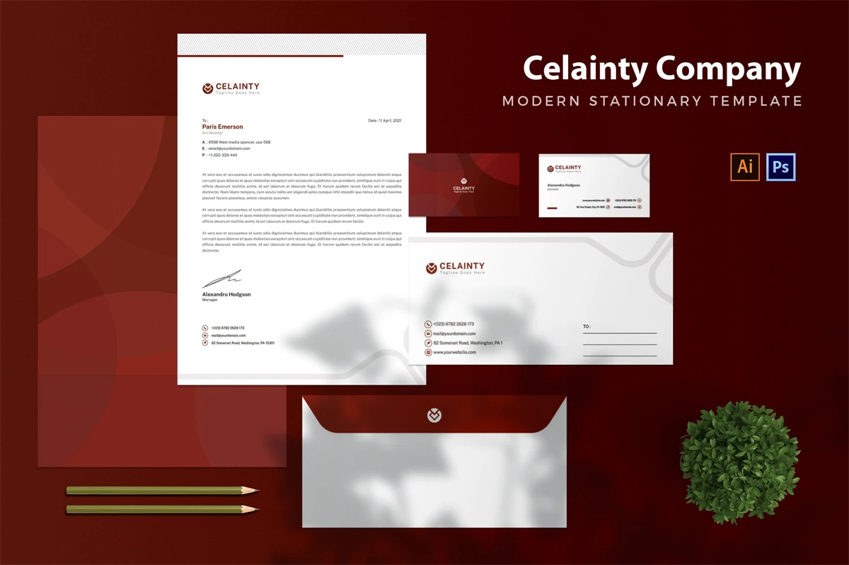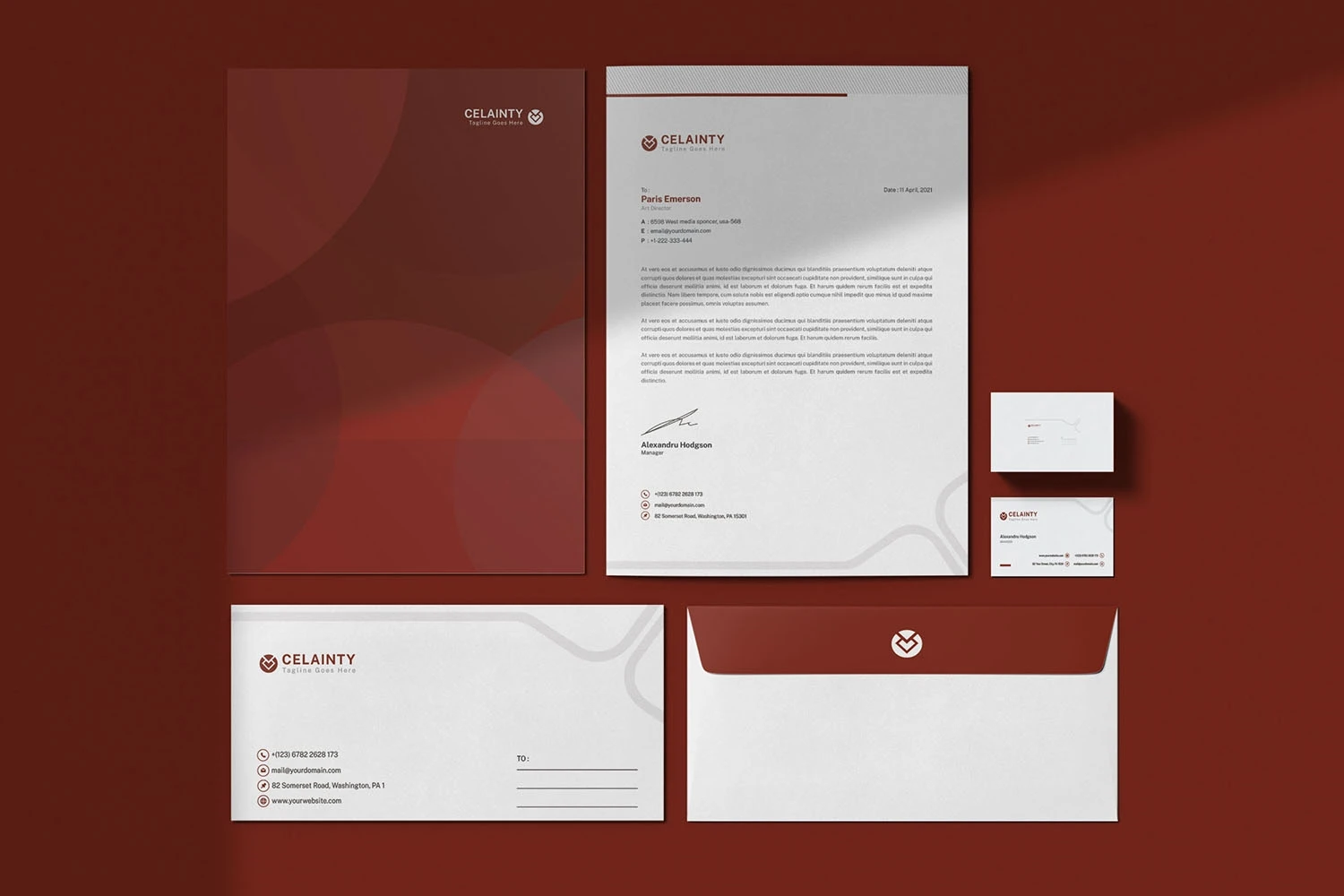Celainty Company - Stationary. This template is great for your business and this design will make your interested, elegant, and easily editable according to your needs. I hope you enjoy for this stationary.
