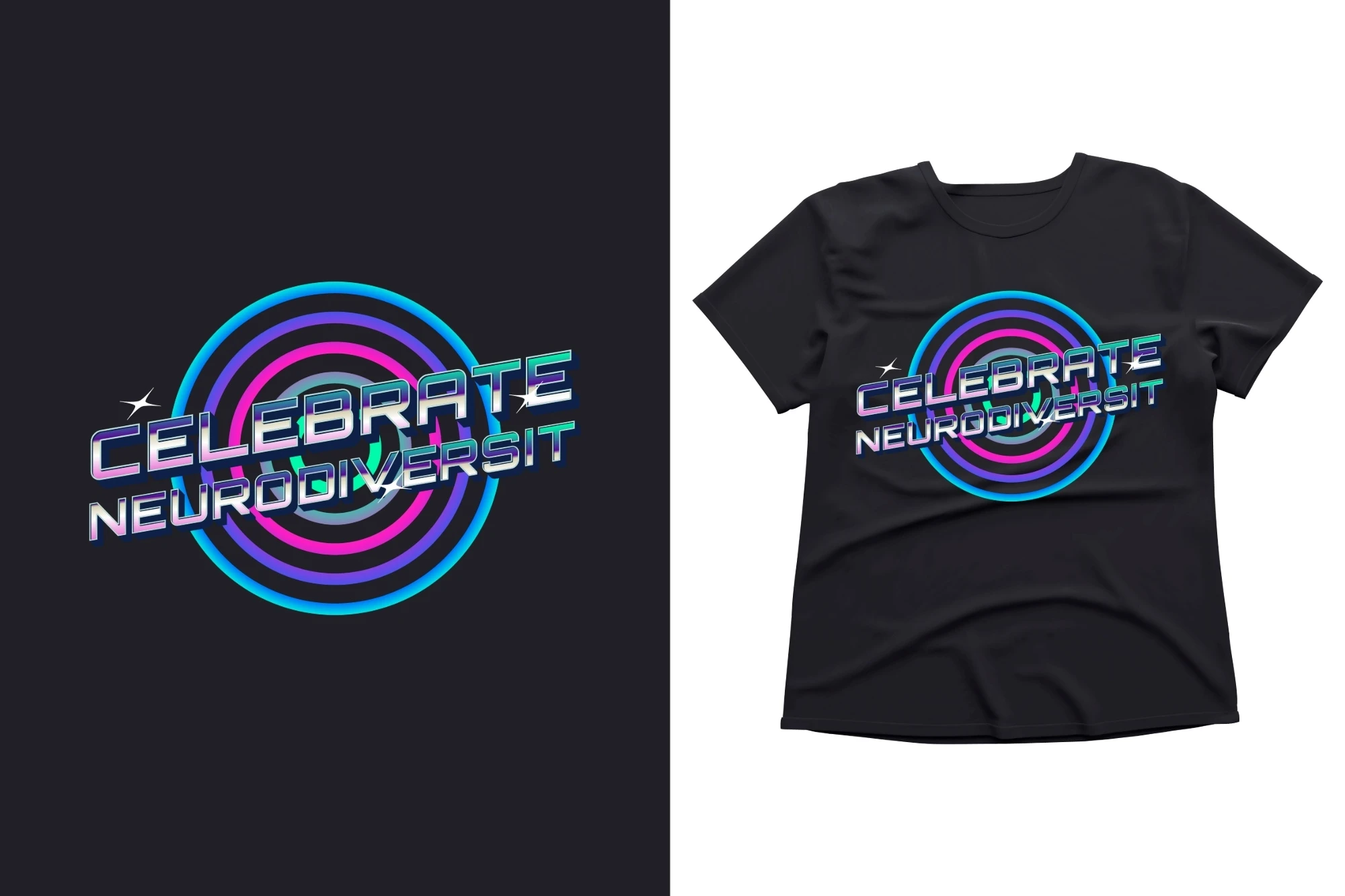 Celebrate Neurodiversity Retro Futuristic T-Shirt Design This is a product made for you. neurodiversity; celebrate; retro; futuristic; t-shirt design; graphic tee; colorful; vibrant; inclusive; diversity; mental health; awareness; neon; circles; typography; bold text; stylish; trendy; fashion; apparel; clothing; statement; unique; eye-catching; modern; cool; artistic; creative; inspirational; positive message; empowerment; support; advocacy; awareness campaign; mental health awareness; inclusive design; graphic design; fashion statement; trendy apparel; unique design; bold design; colorful circles; neon colors; futuristic design; retro style; stylish t-shirt; graphic art; inclusive message; mental health support; awareness t-shirt; fashion design; statement tee;