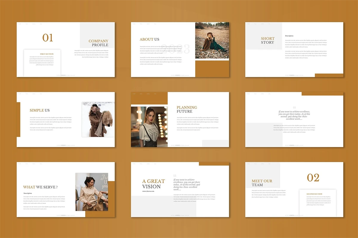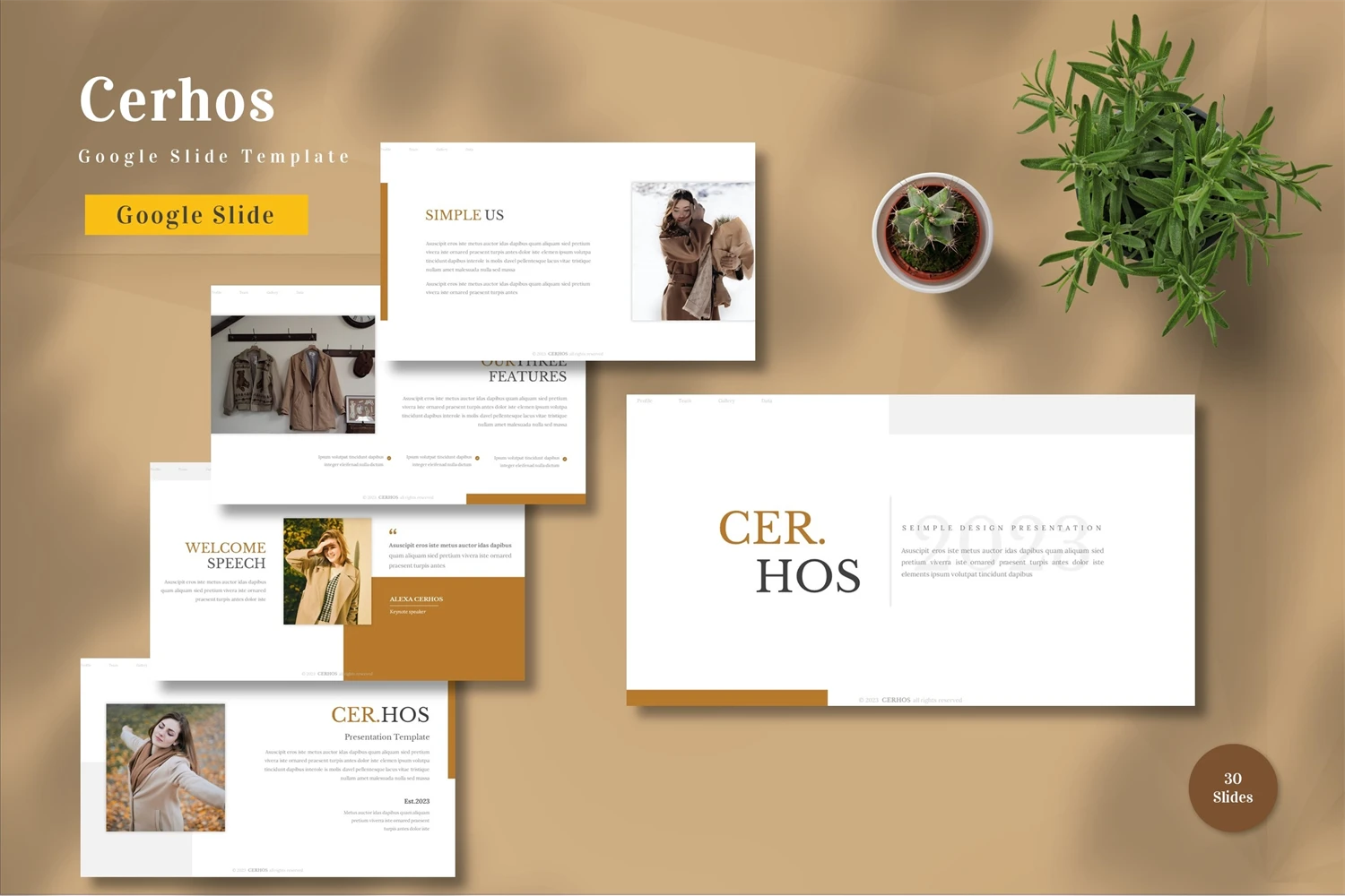 Get it now! **Cerhos - Google Slide Template** for All Business and Personal Needs All elements on this template are editable; input your content, replace your image with a placeholder, change the color, and all presentations include an animated slide to present your slides.