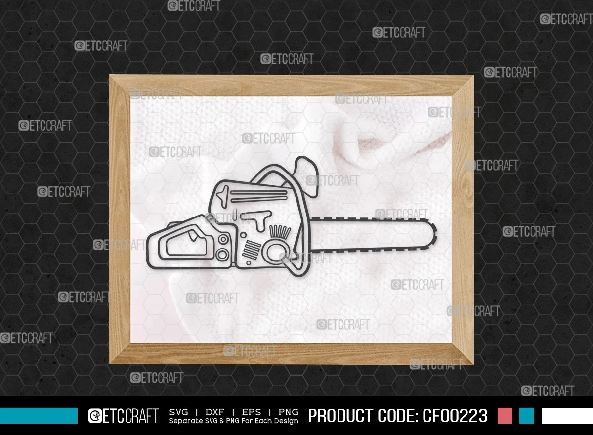 Bring your woodworking and design projects to life with the Chain Saw Outline Wood Log Cutting Machine Cutter Tool SVG Cut File Bundle. It's time to turn your creative visions into remarkable realities. Start your projects today!